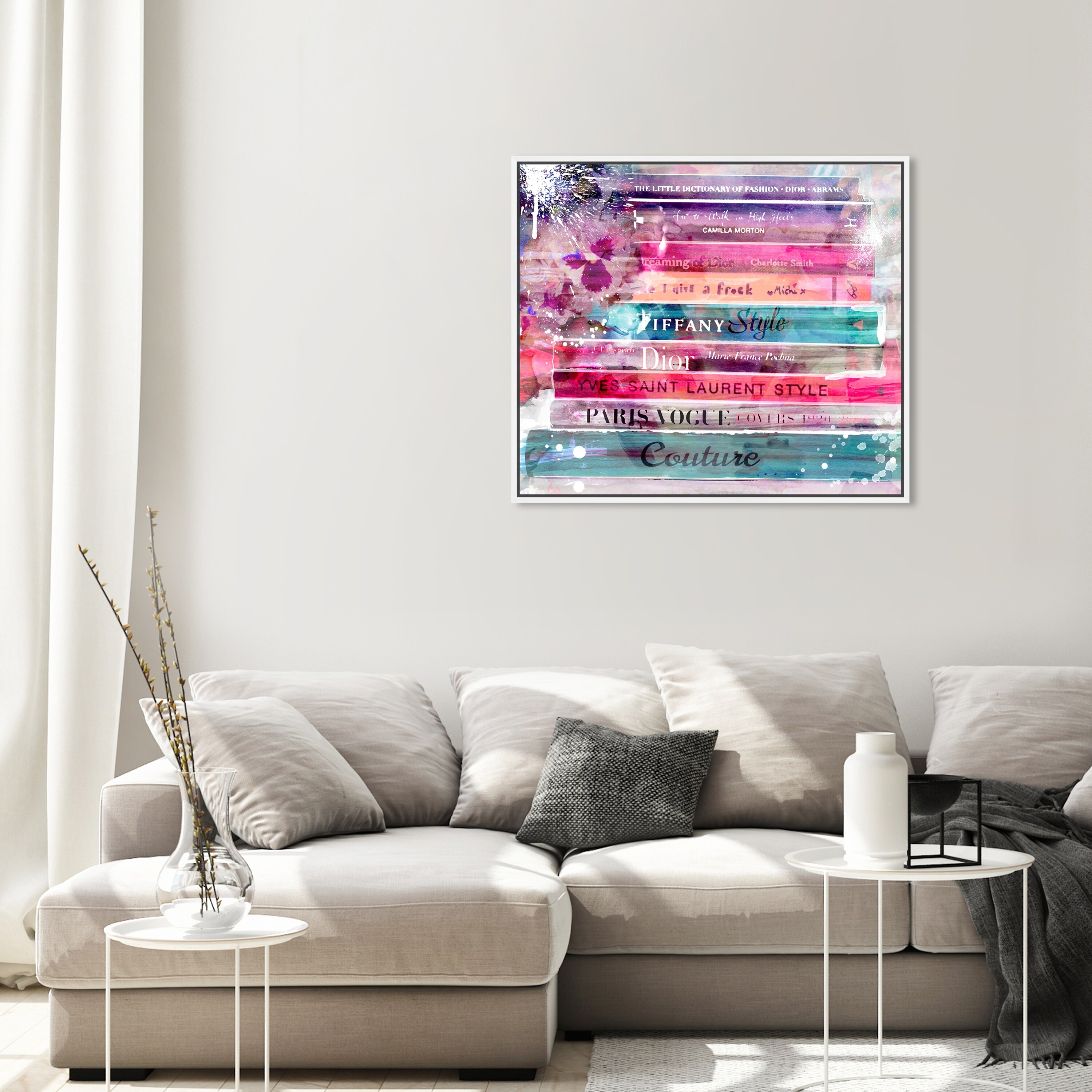 Oliver Gal 'Fashion Splash Library' Fashion and Glam Wall Art Framed Canvas Print Books - Pink, Blue