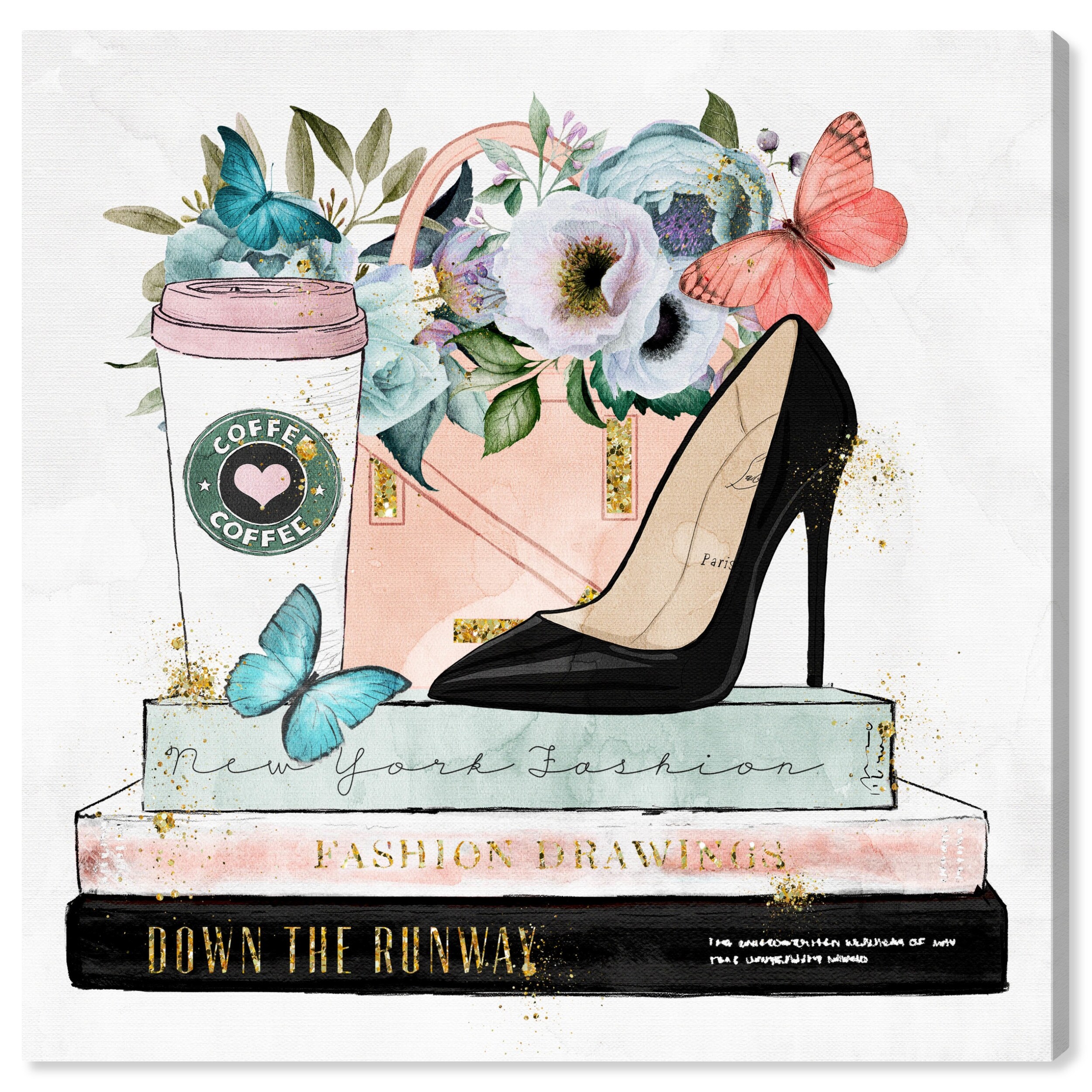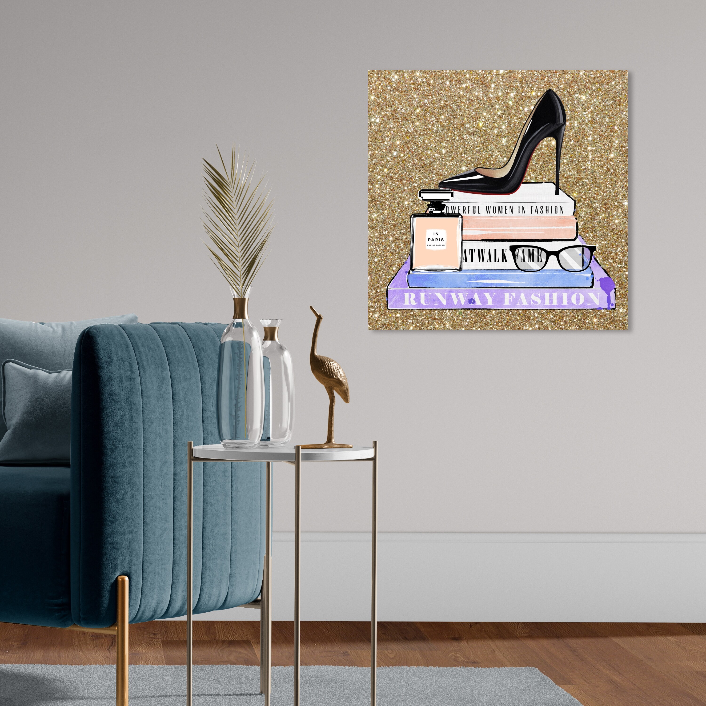 Oliver Gal 'Book Addict Serenity' Fashion and Glam Wall Art Canvas Print Shoes - Gold, Gray