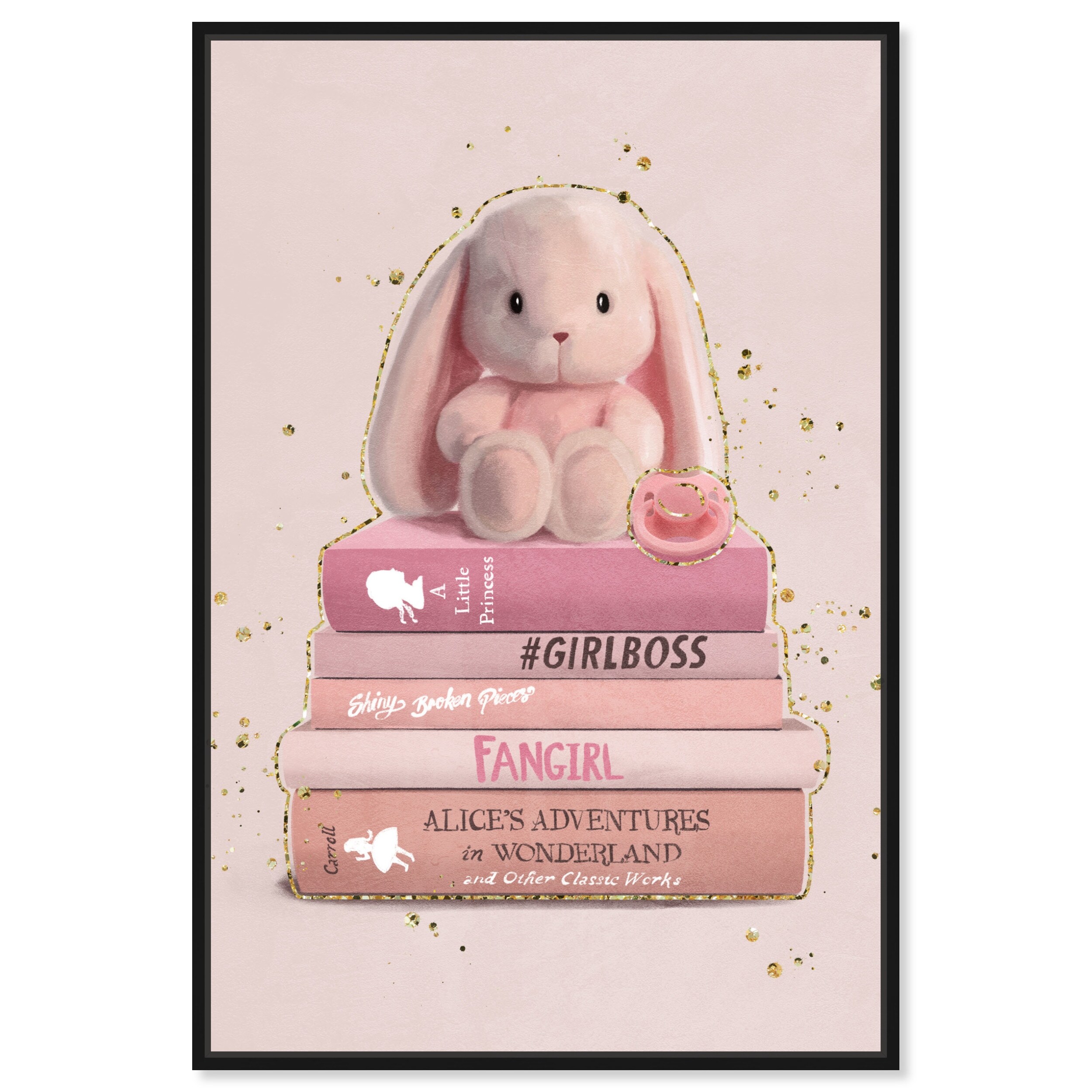 Oliver Gal 'Bunny Plush and Books' Glam Pink Wall Art Canvas Print