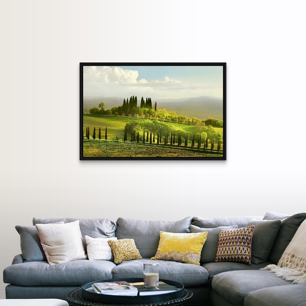 "Green field in Tuscany" Black Float Frame Canvas Art
