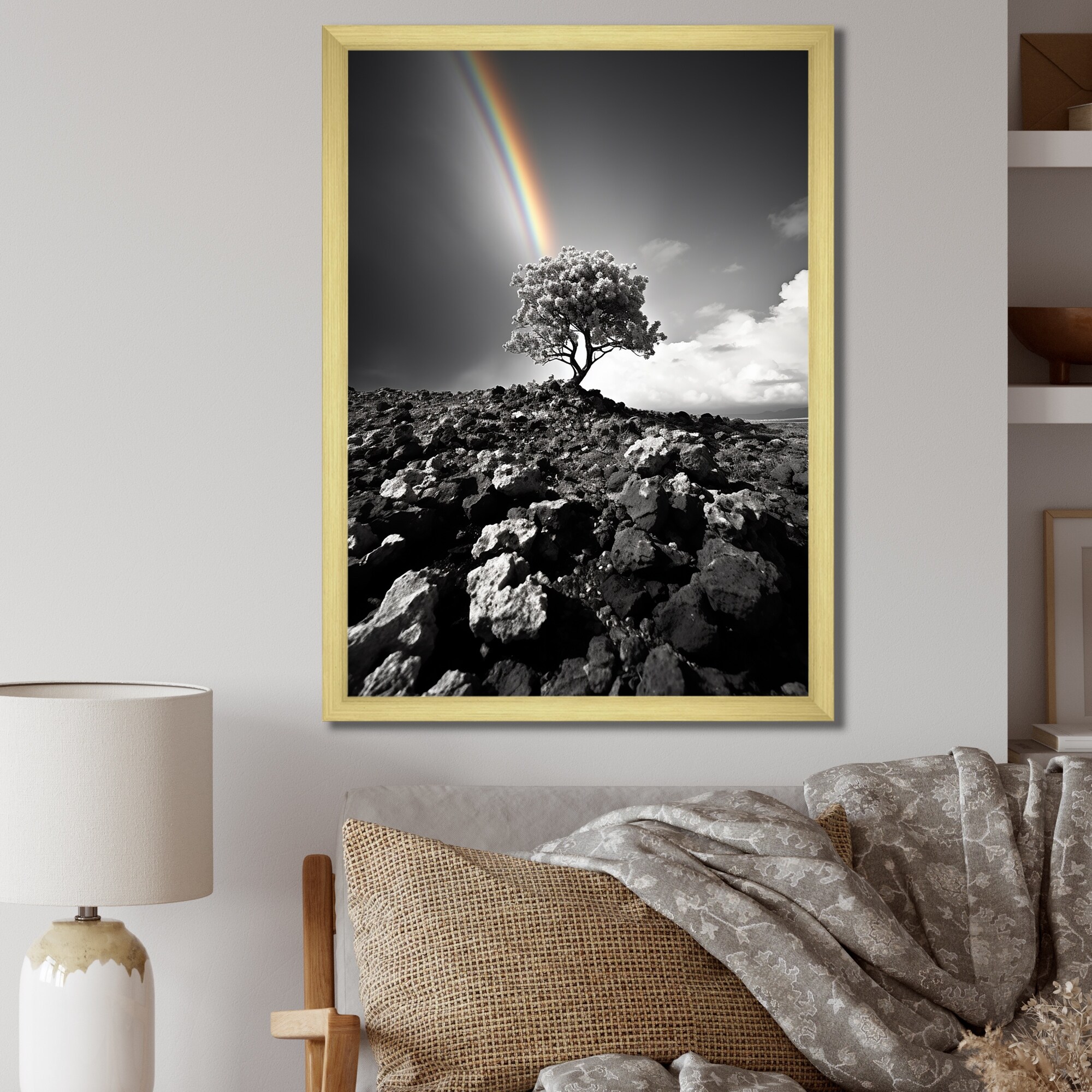 Designart "Rainbow Colorful Contrast Grey Tree Landscape II" Rainbow Framed Wall Art Living Room
