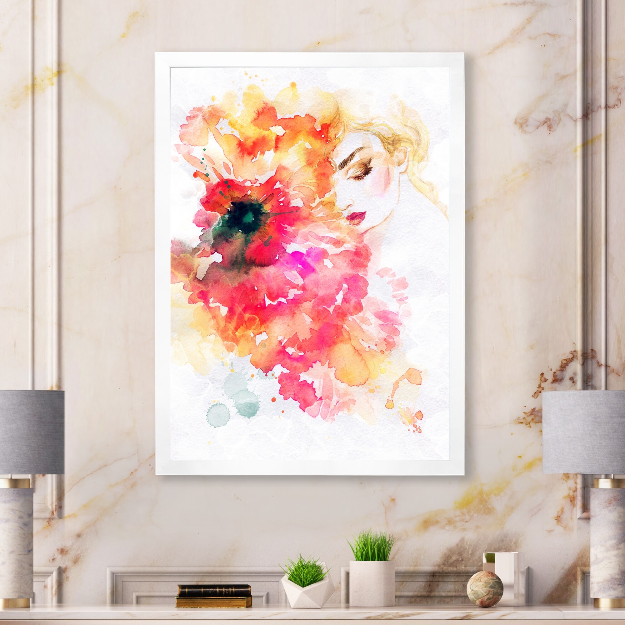 Designart "Floral Stylish Fashionista in Vibrant Colors" Glam Framed Wall Art