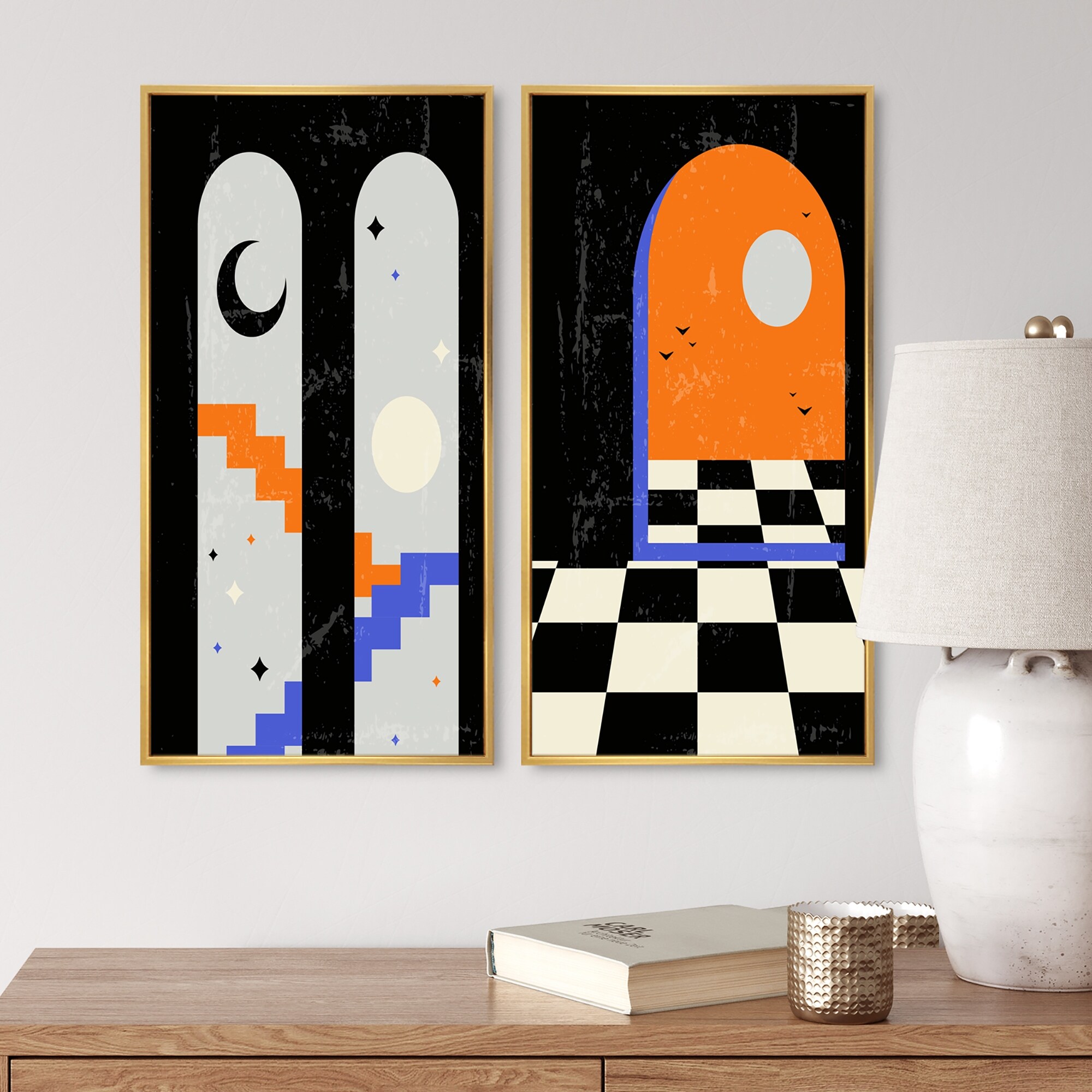 Designart "Graphic Vintage Minimal Architecture VI" Geometric Framed Art Set of 2 Pieces
