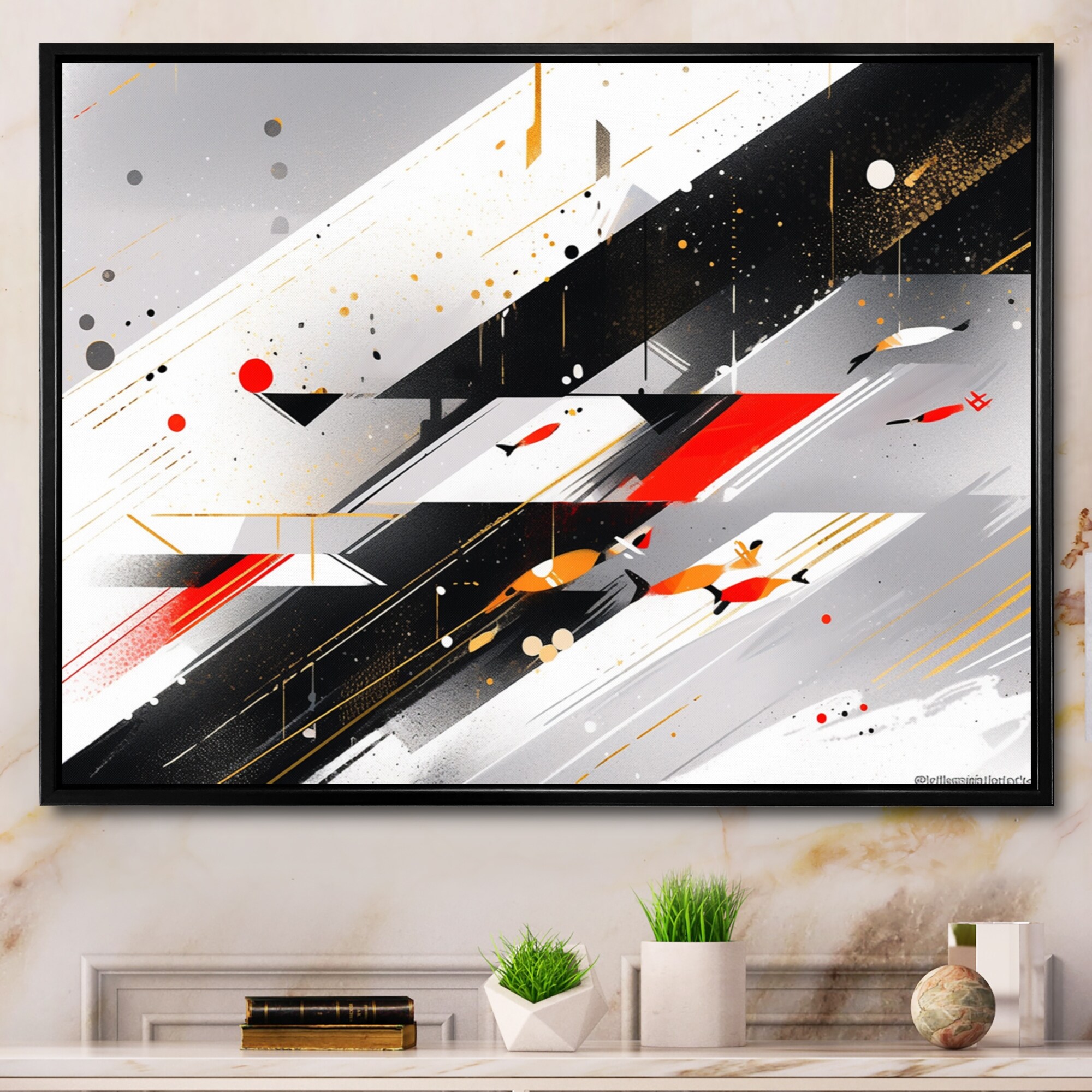 Designart "Multicolor Symmetrical Sripes I" Cubism Framed Canvas Art Print