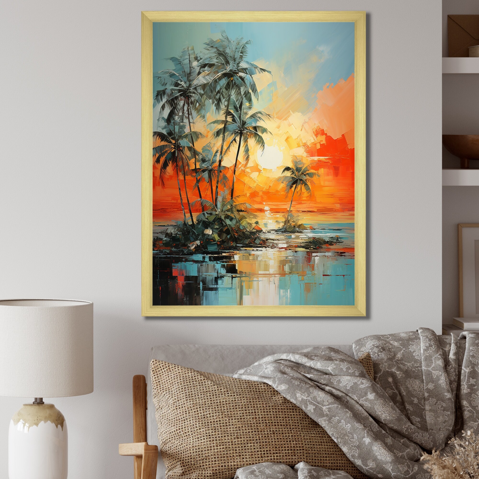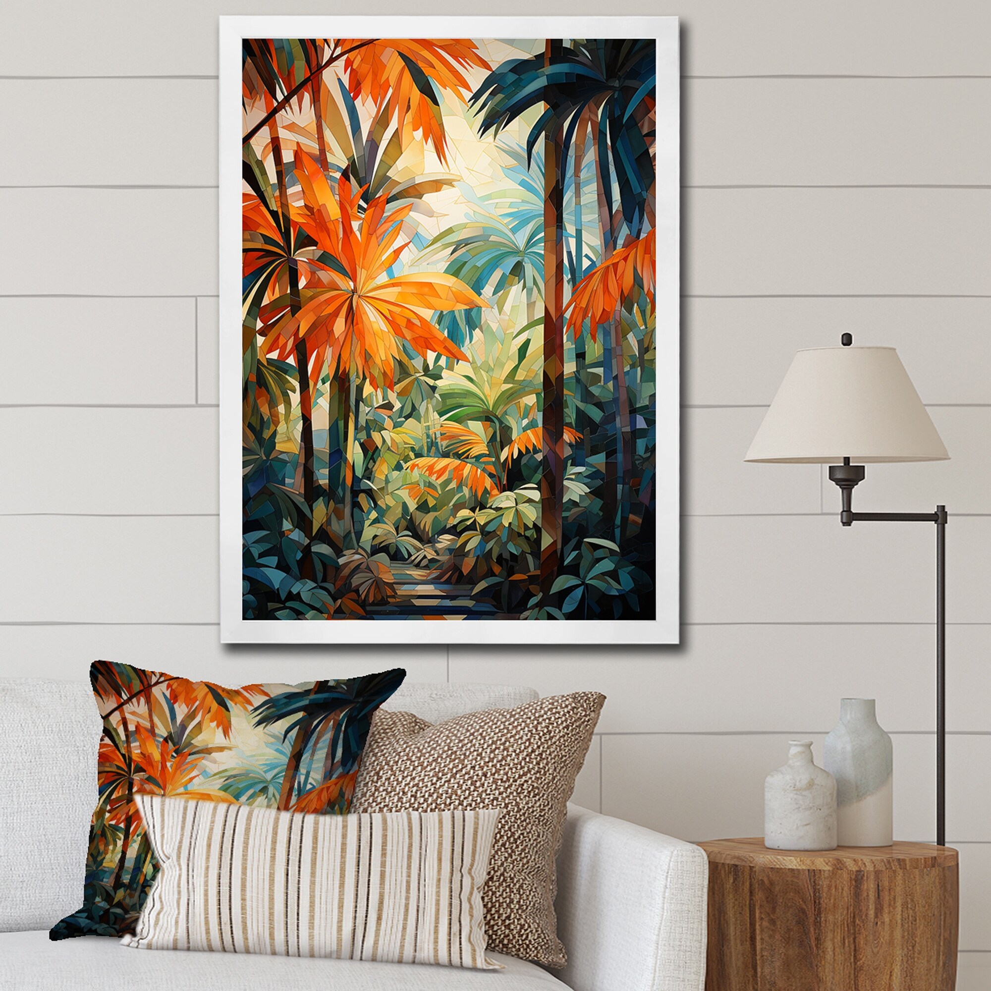 Designart "Orange Palm Trees Mosaic II" Palms & Palm Trees Framed Canvas Art Print
