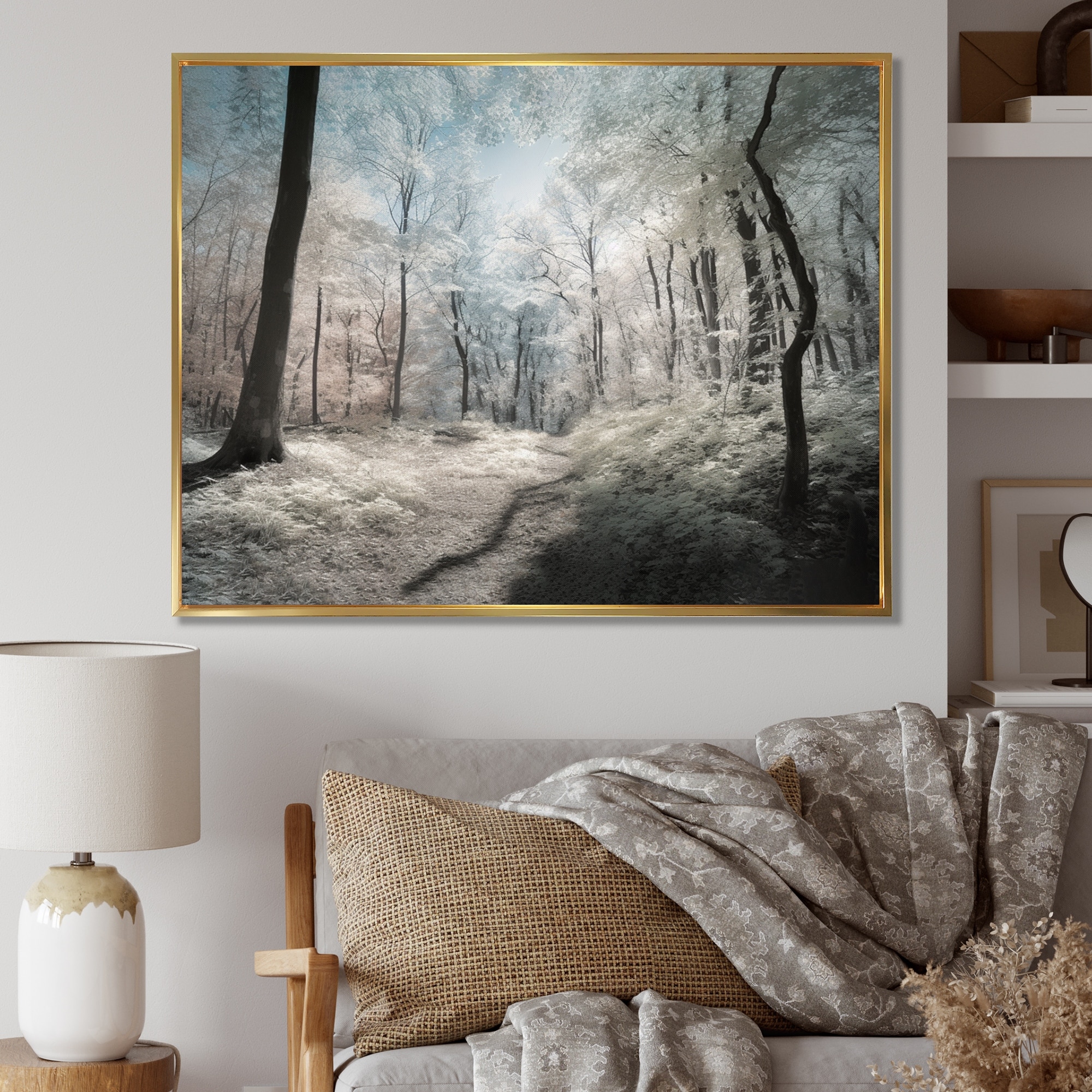 Designart "Snow Covered Trees" Tree Floral Framed Wall Art for Living Room