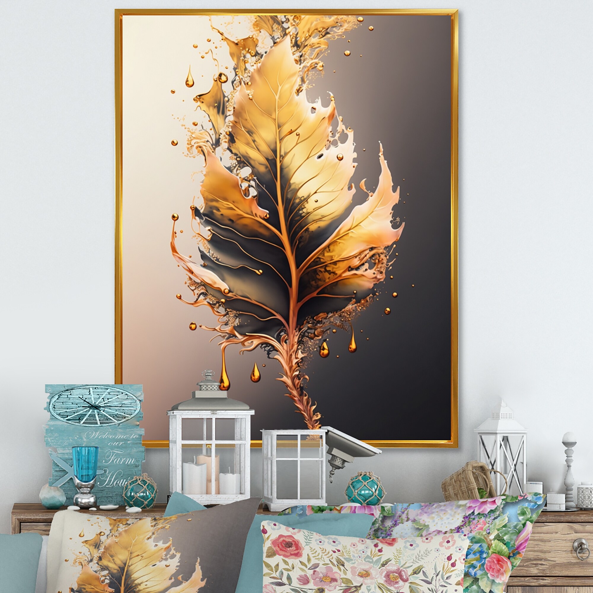 Designart "Gold Abstract Leaves II" Floral & Botanical Framed Canvas Art Print