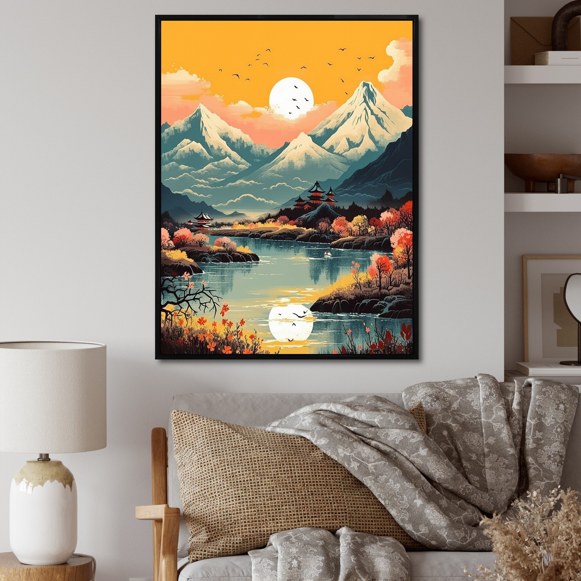 Designart "Snow Covered Mountain Peaks Iv" Japon Landscape Framed Canvas Art Print