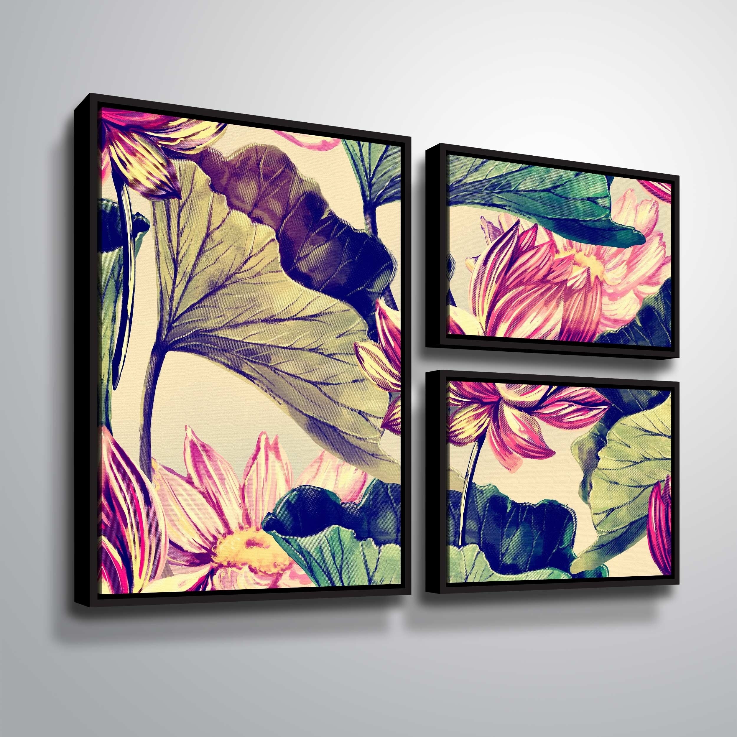 ArtWall 'Water Lily' 3 Piece Floater Framed Canvas Flag Set