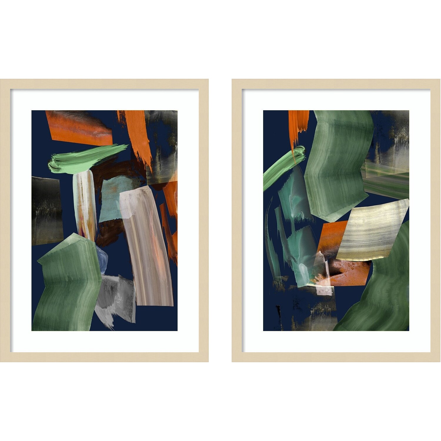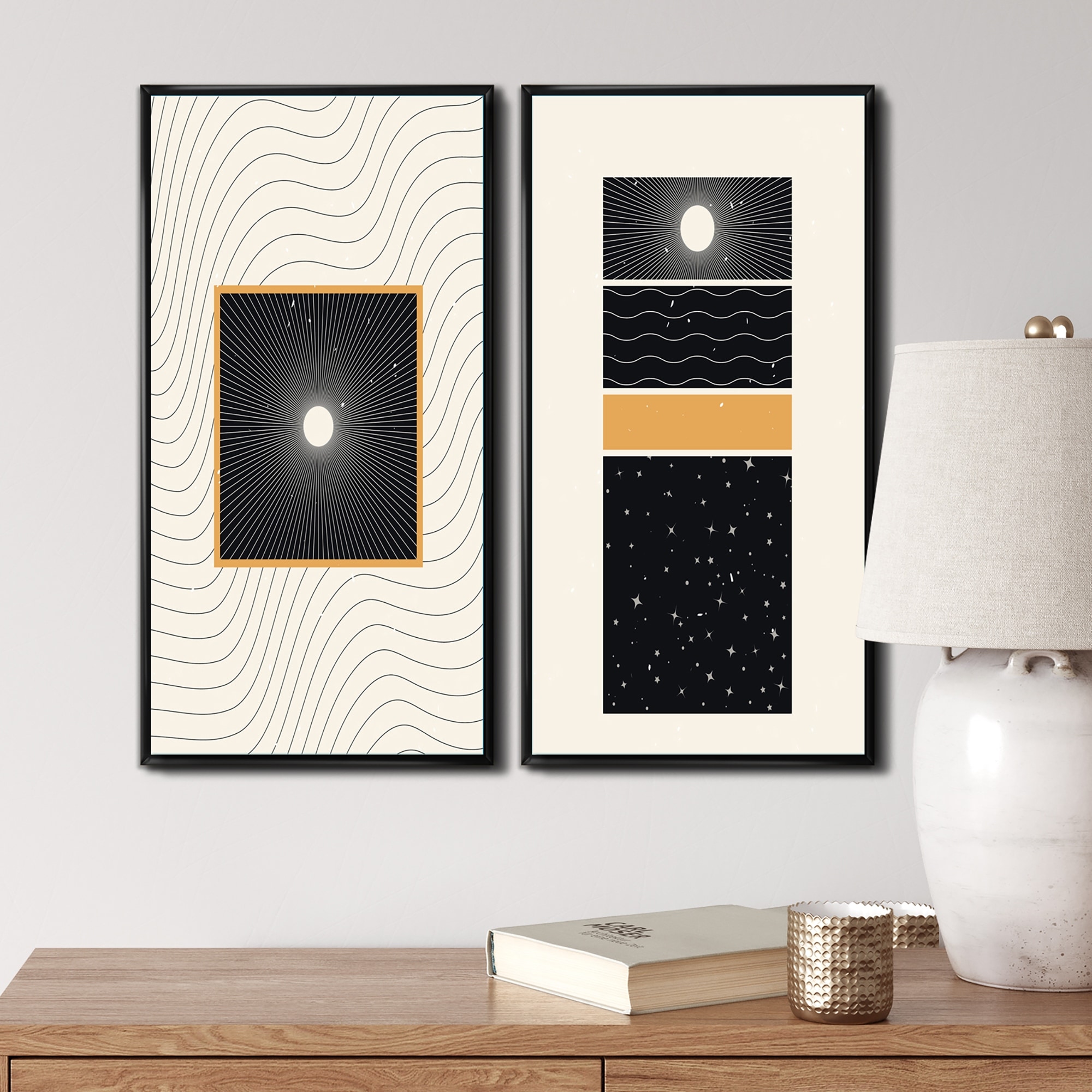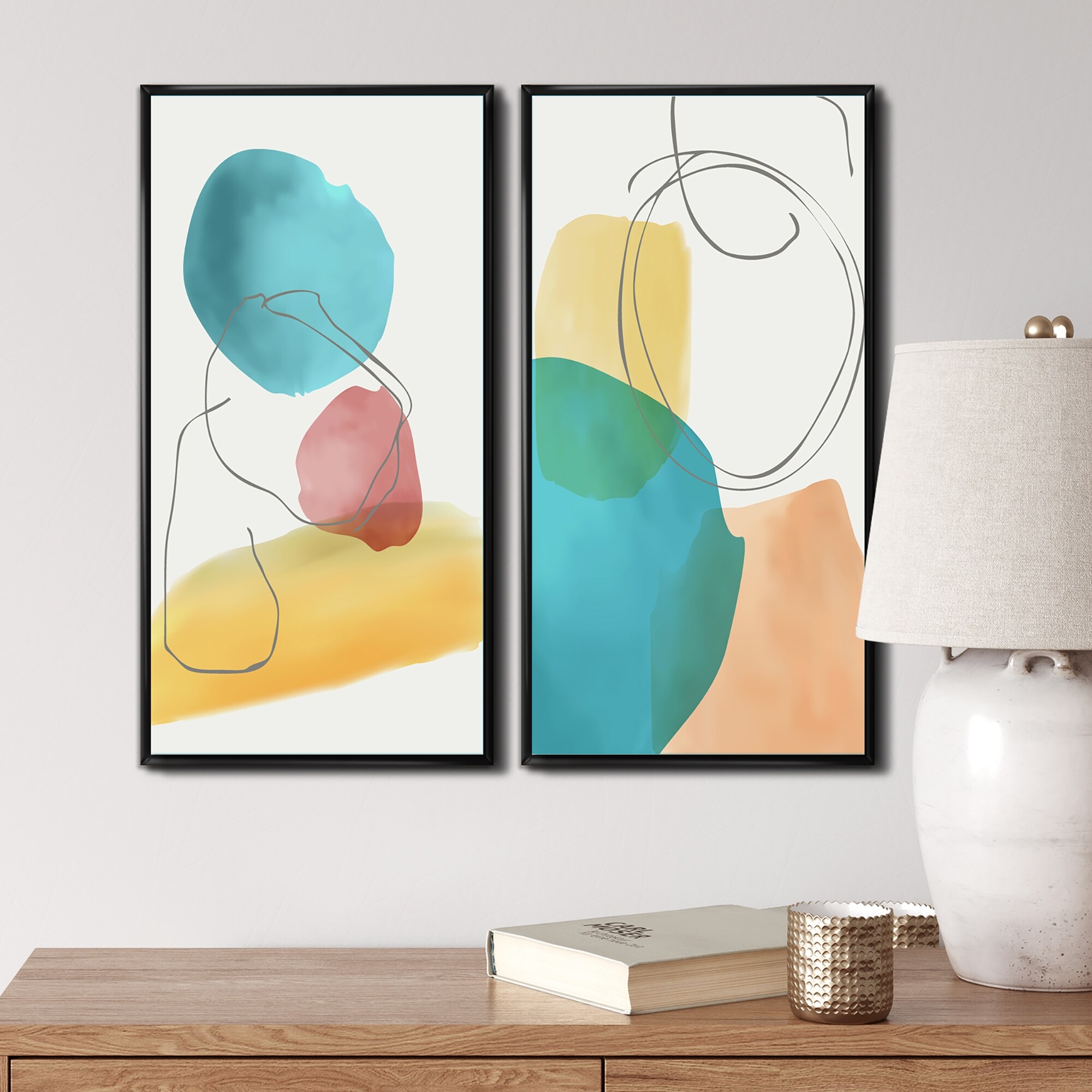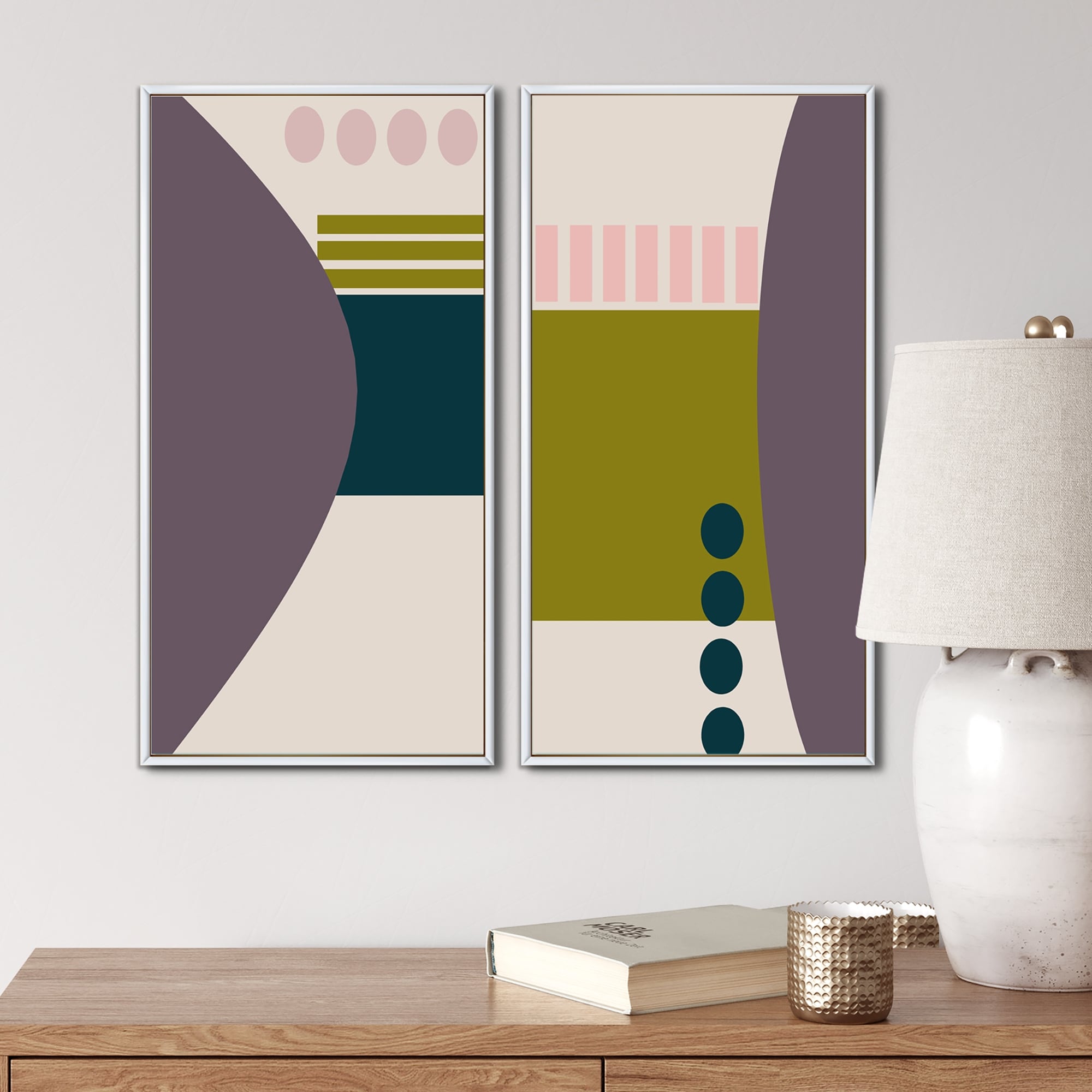Designart "Minimalistic Retro Color Geometrics VII" Geometric Framed Art Set of 2 Pieces