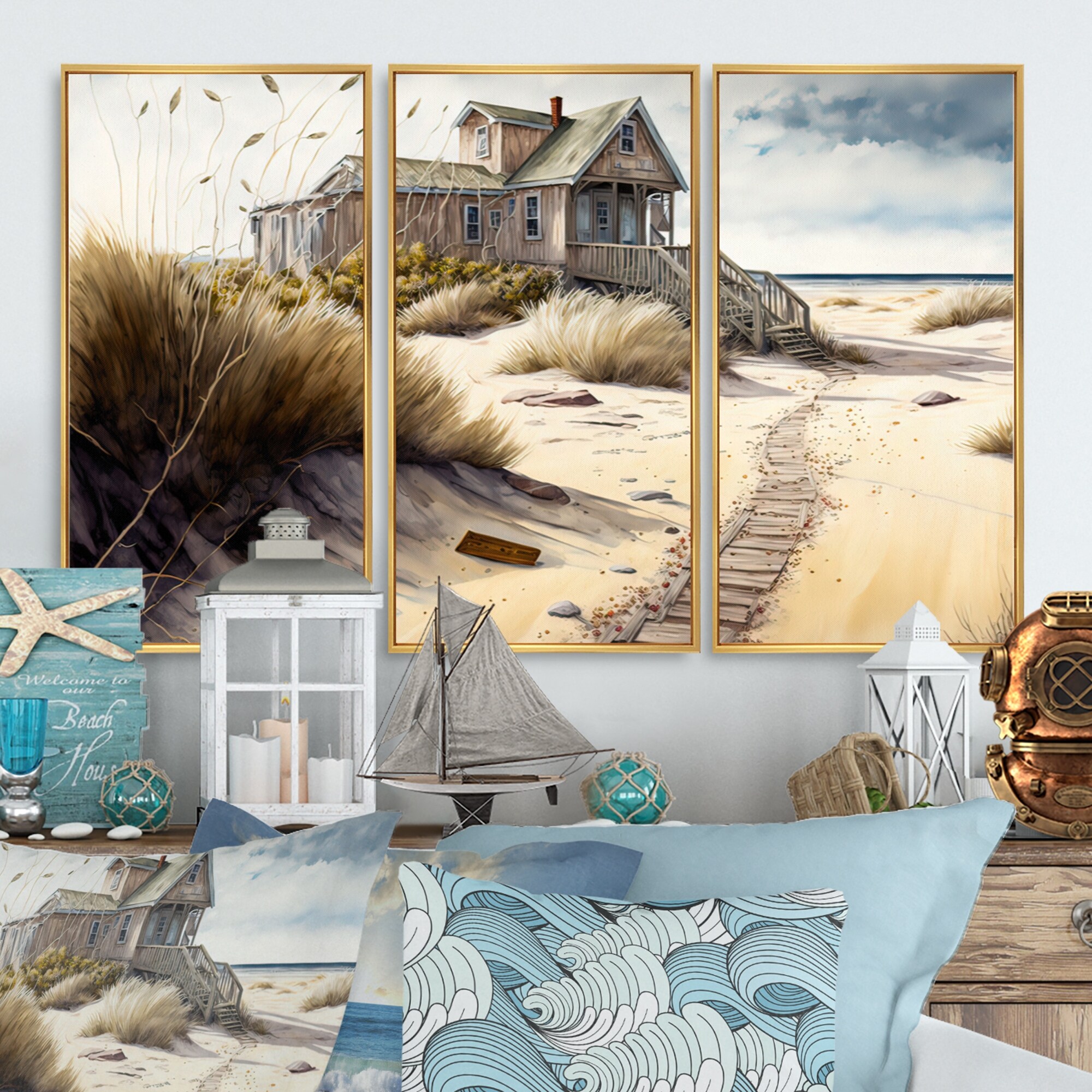 Designart "Small Cottage in Autumn V" Cottage Landscape Framed Canvas Art Print - 3 Panels
