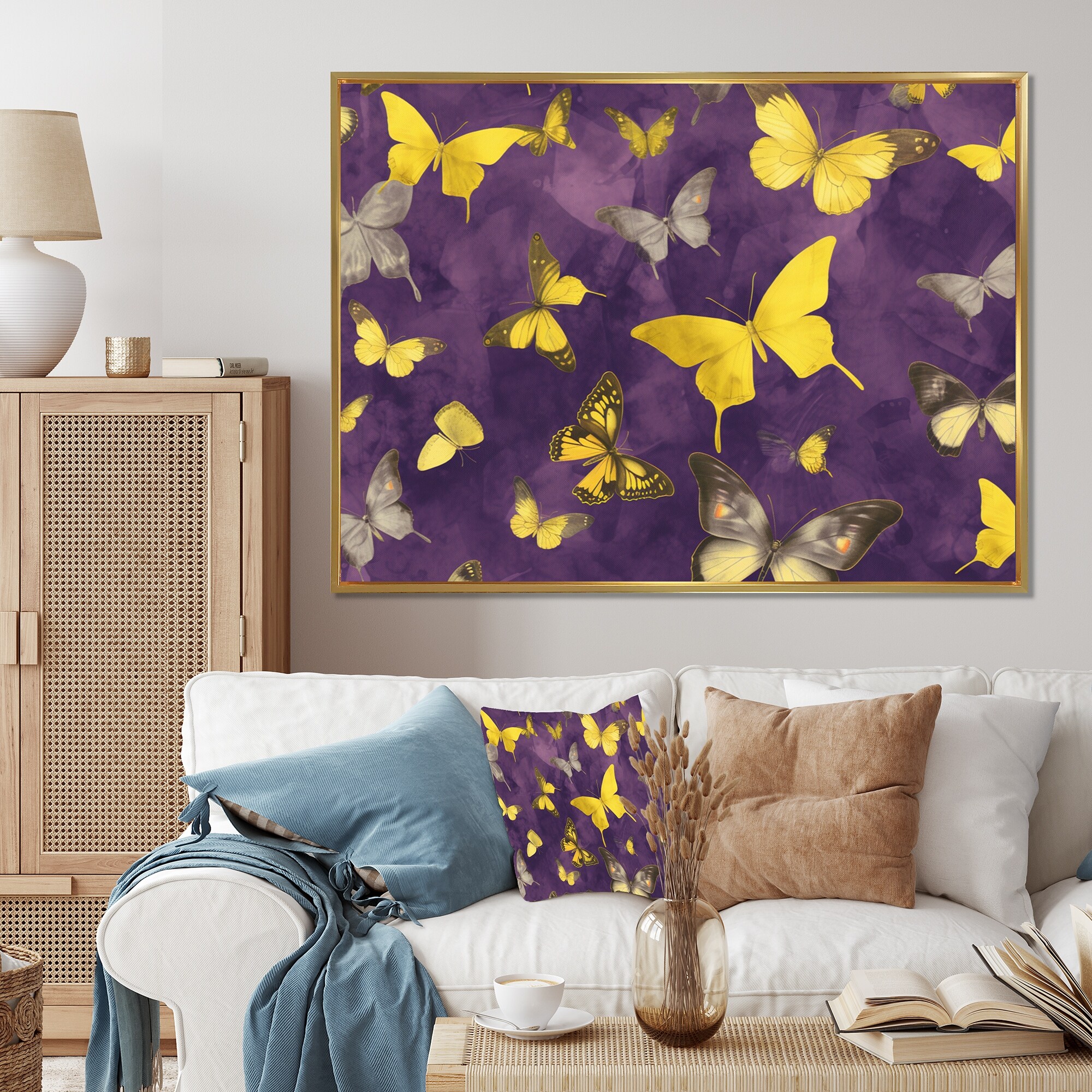 Designart "Yellow And Purple Butterfly" Animals Butterfly Framed Canvas Wall Art