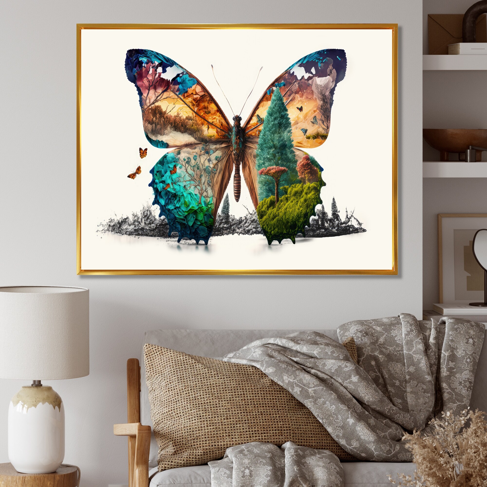Designart "Double Exposure of a Butterfly With Nature Landscape I" Modern Framed Canvas Art Print