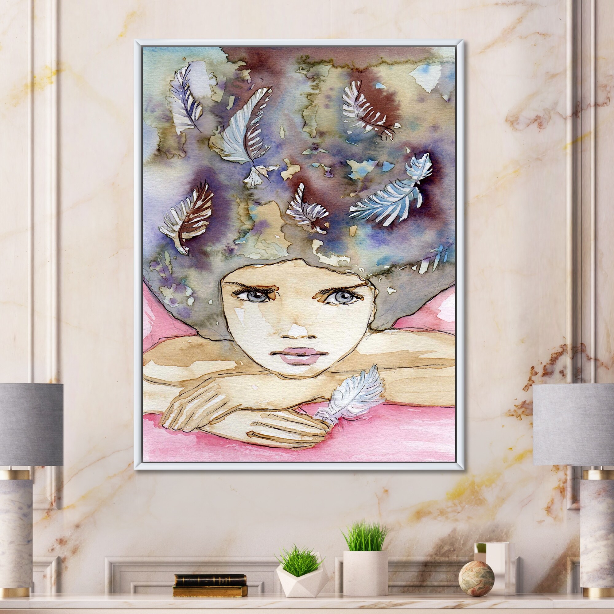 Designart "Abstract Portrait of a Young Woman" Glam Framed Canvas Wall Art Print