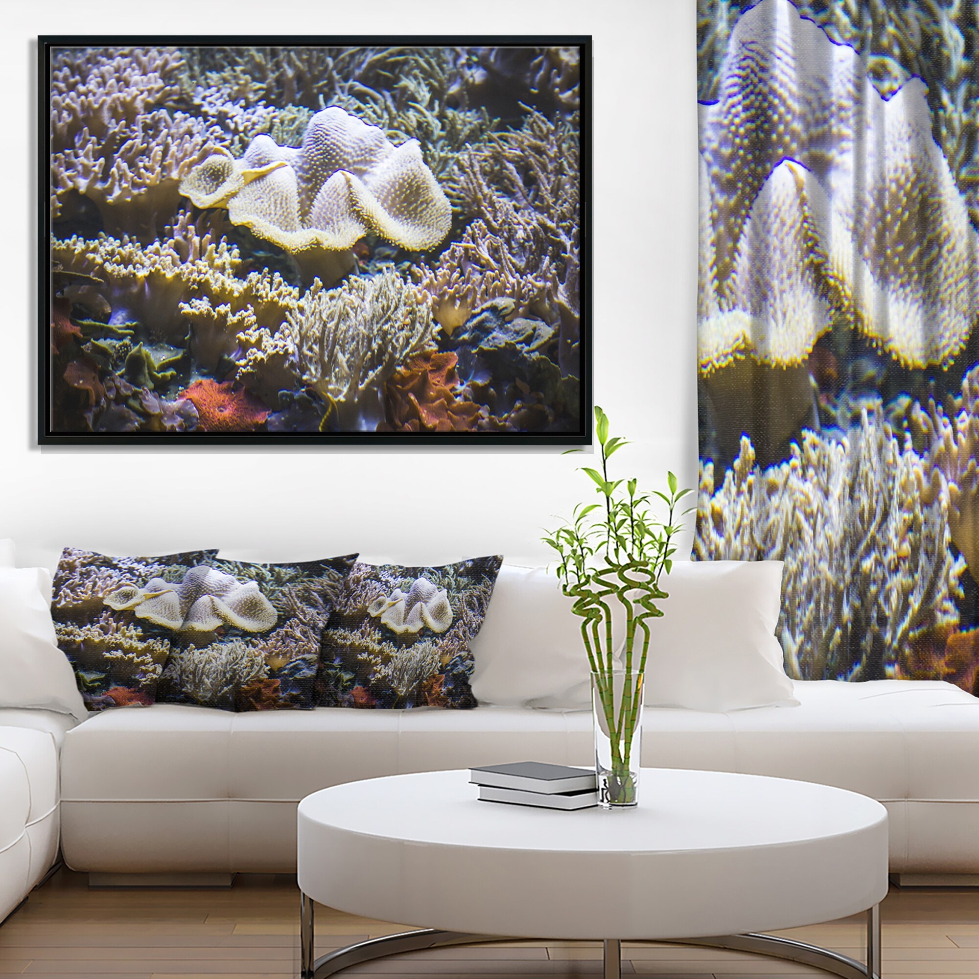 Designart "Beautiful Seabed With Fish" Large Landscape Framed Canvas Art