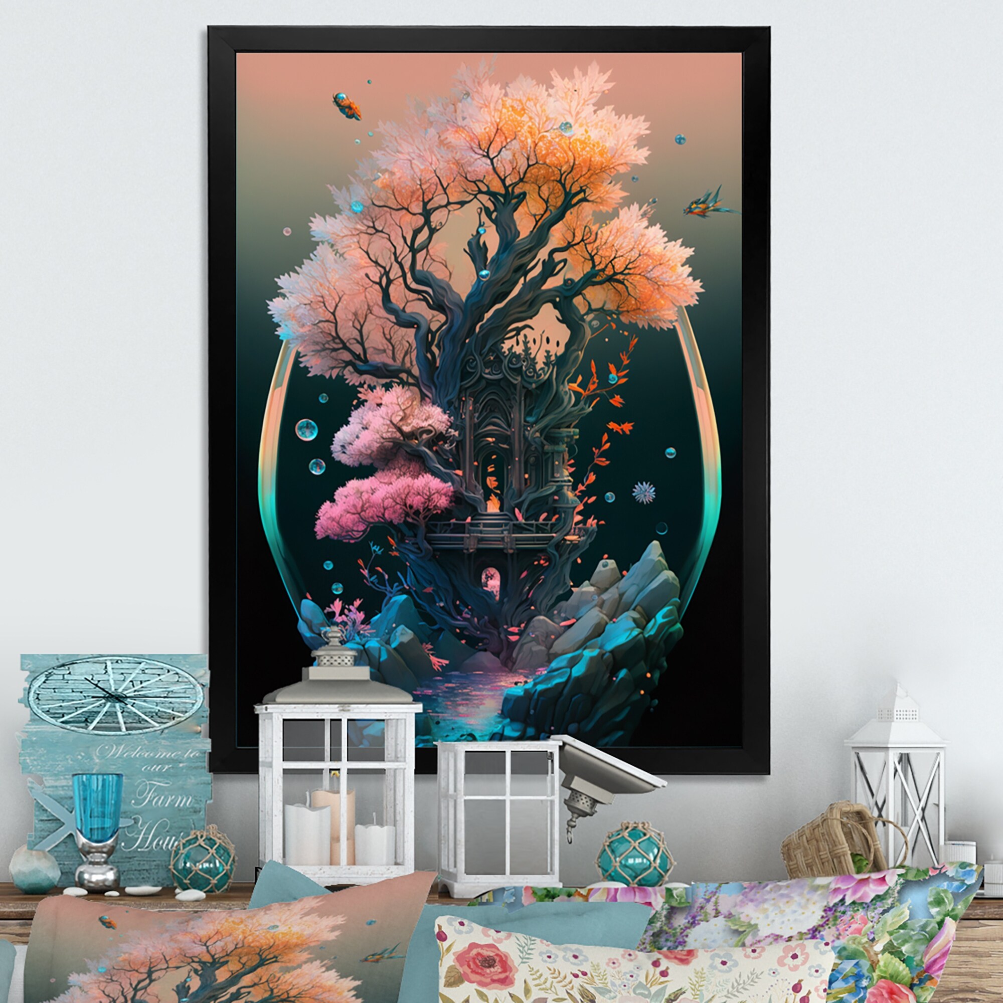 Designart "Hexagon Cherry Blossum Island II" Tree Framed Art Print