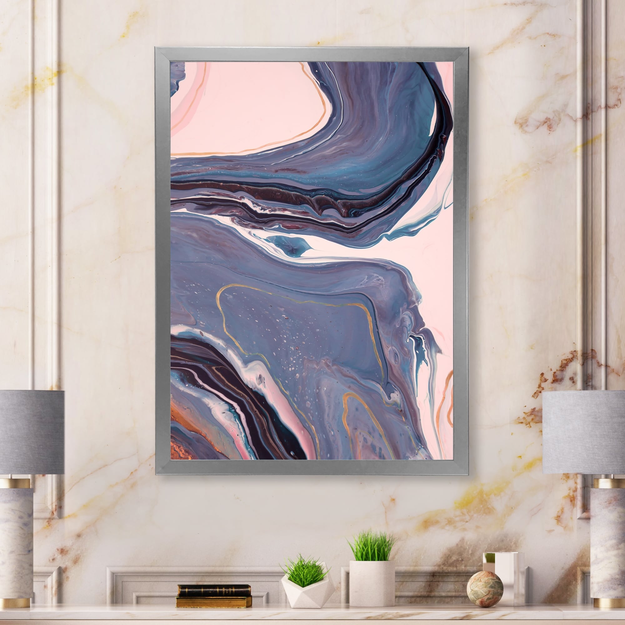 Designart "Luxury Blue Marble Swirl Flow Art II" Abstract Framed Wall Decor