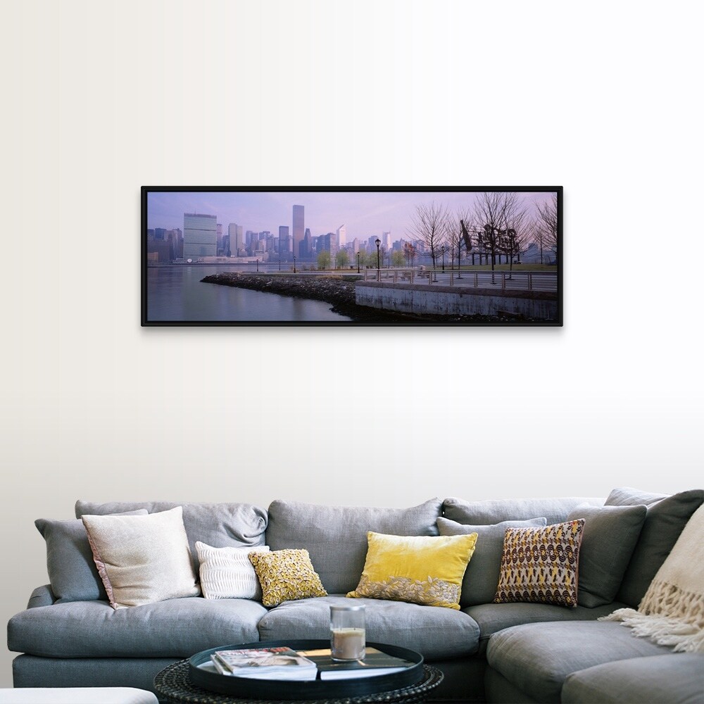 "New York State, New York City, Skyscrapers in a city" Black Float Frame Canvas Art