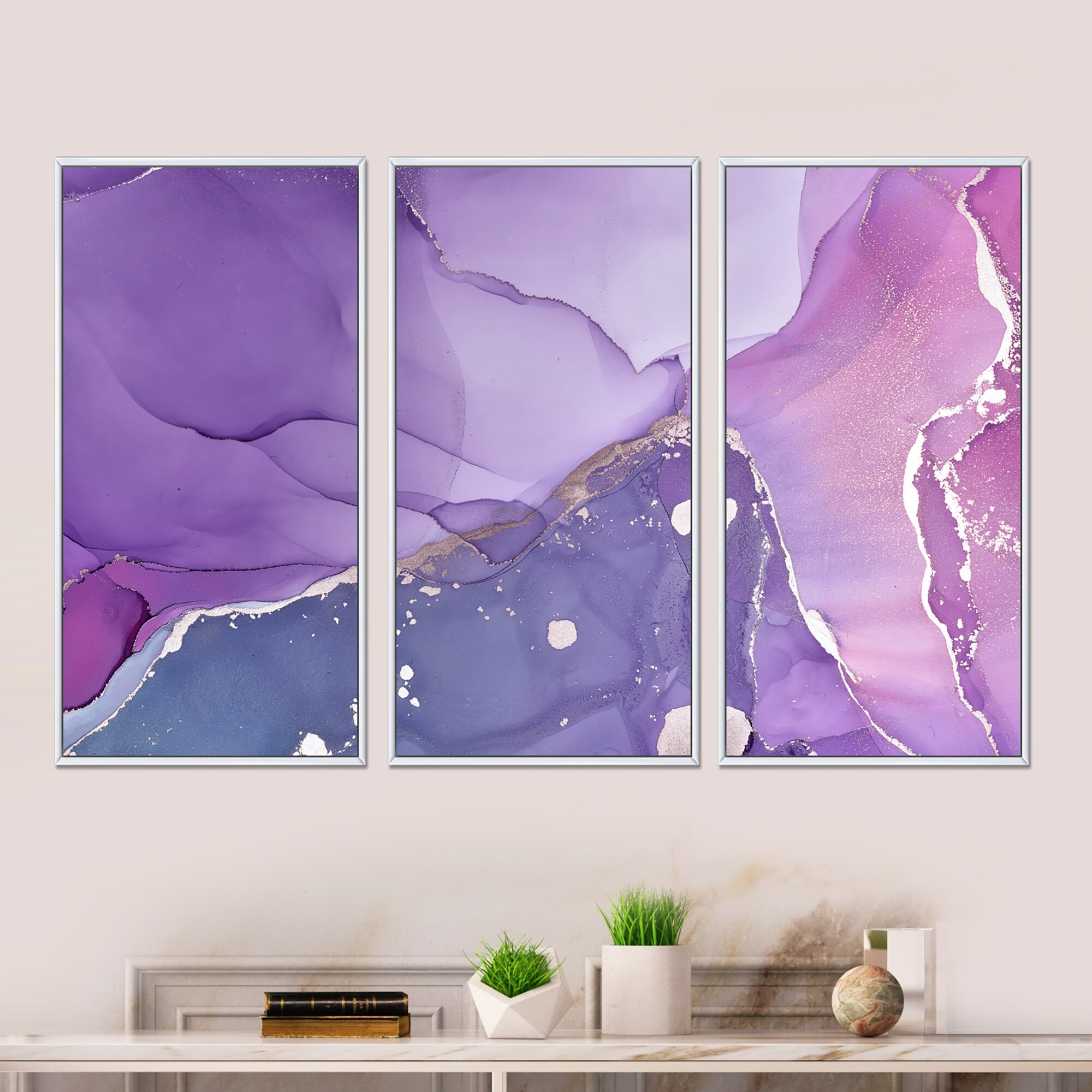 Designart "Purple And Blue Liquid Fuchia Art II" Modern Framed Canvas Wall Art Print Set of 3 - 4 Colors of Frames