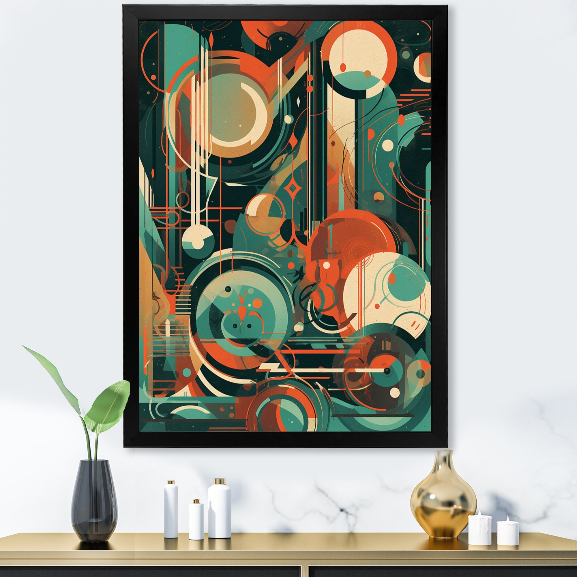 Designart "Green And Orange Mid Century Innovations Iv" Modern Midcentury Framed Canvas Art Print