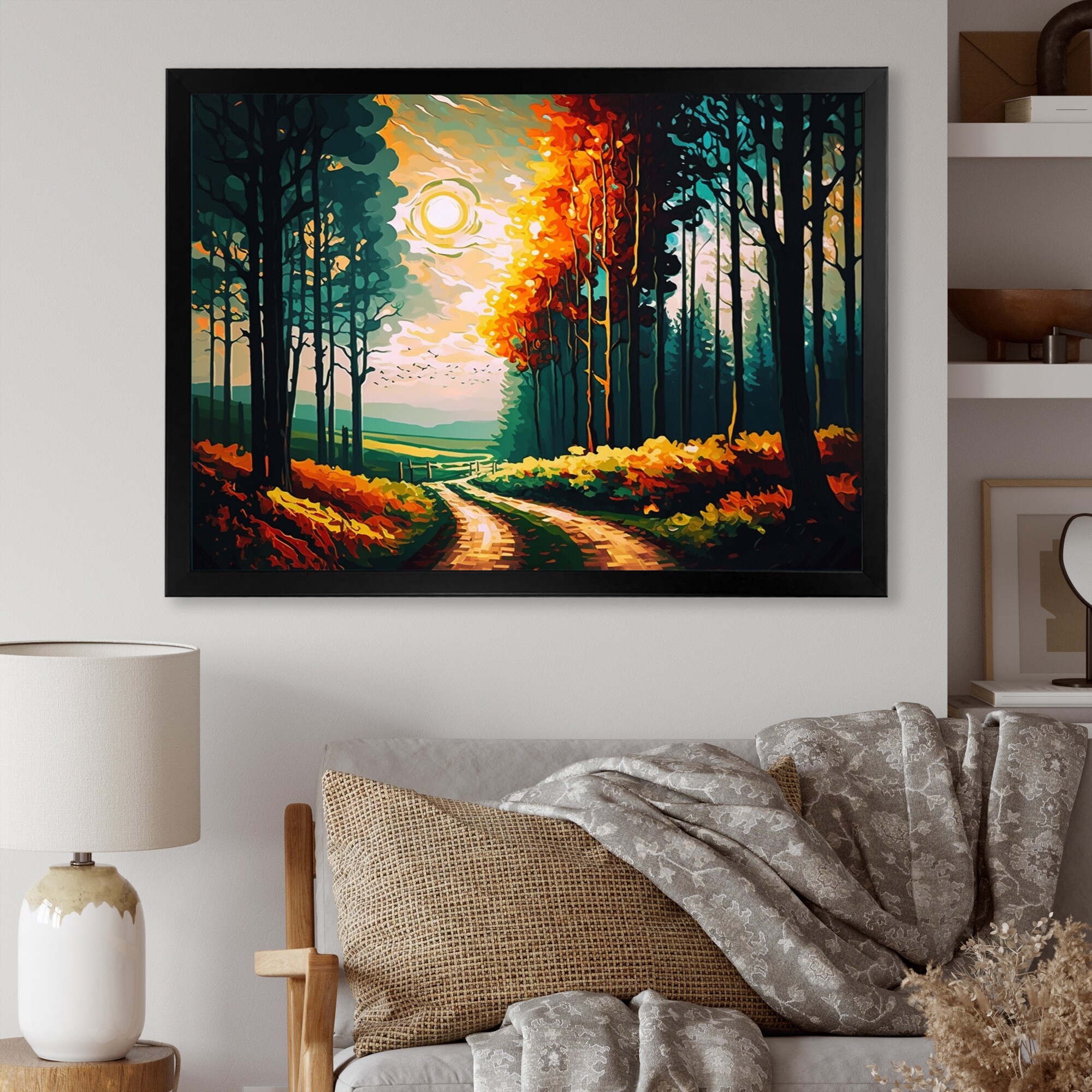Designart "Colorful Path Through the Forest I" Landscape Forest Framed Canvas Art Print