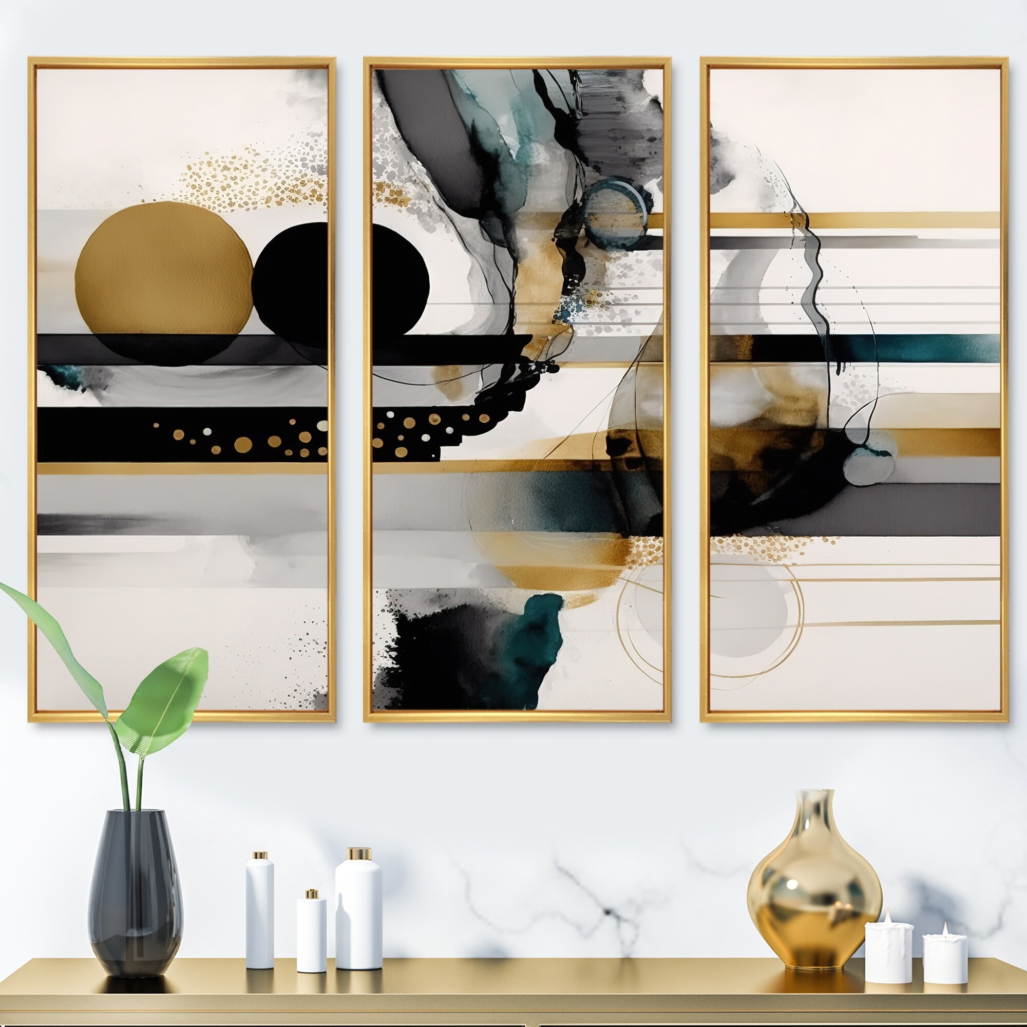 Designart "Abstract Transitional Modern Shapes III" Modern Shapes Transitional Framed Canvas Art Print - 3 Panels