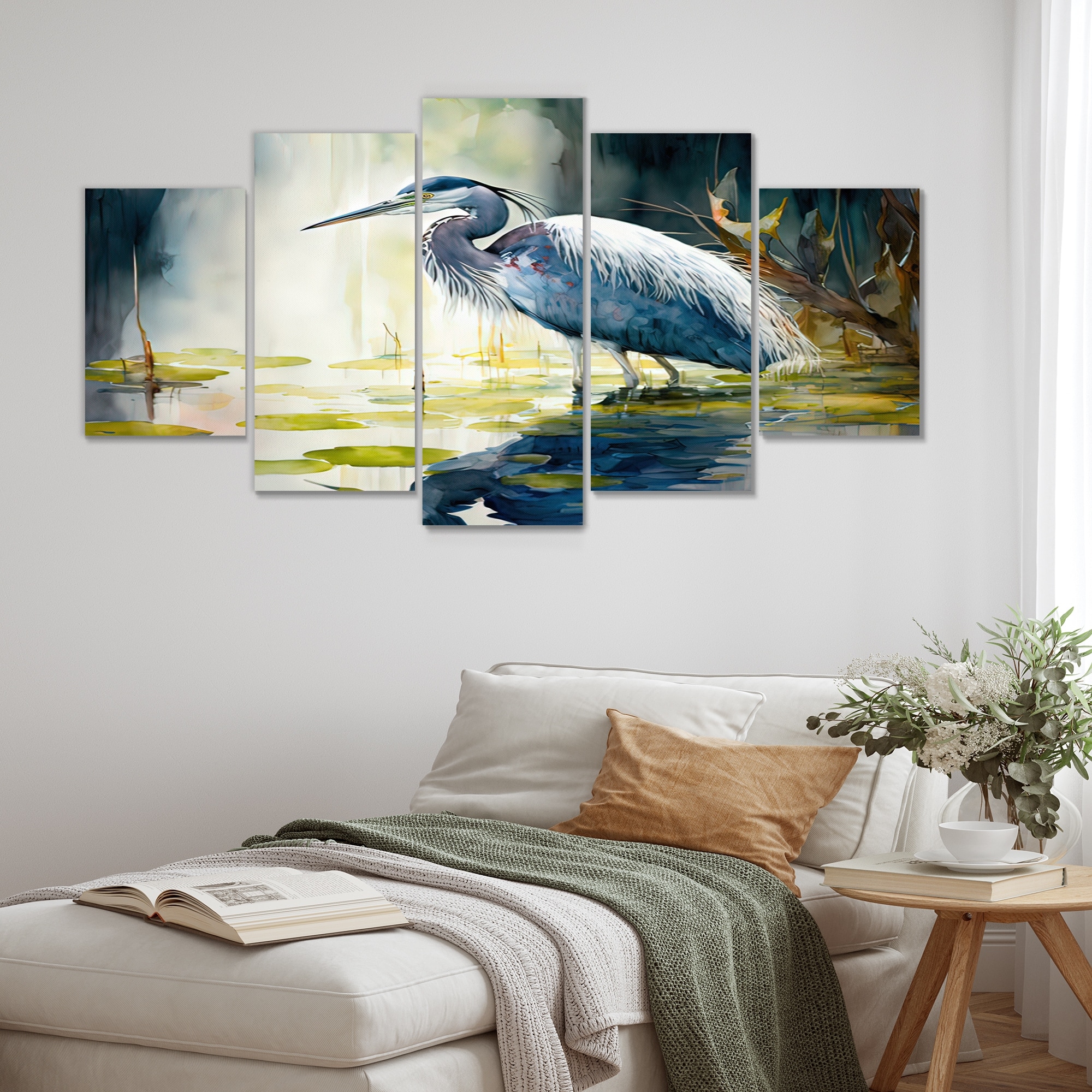 Designart "Deleted" Animals Heron Multipanel Canvas Wall Art
