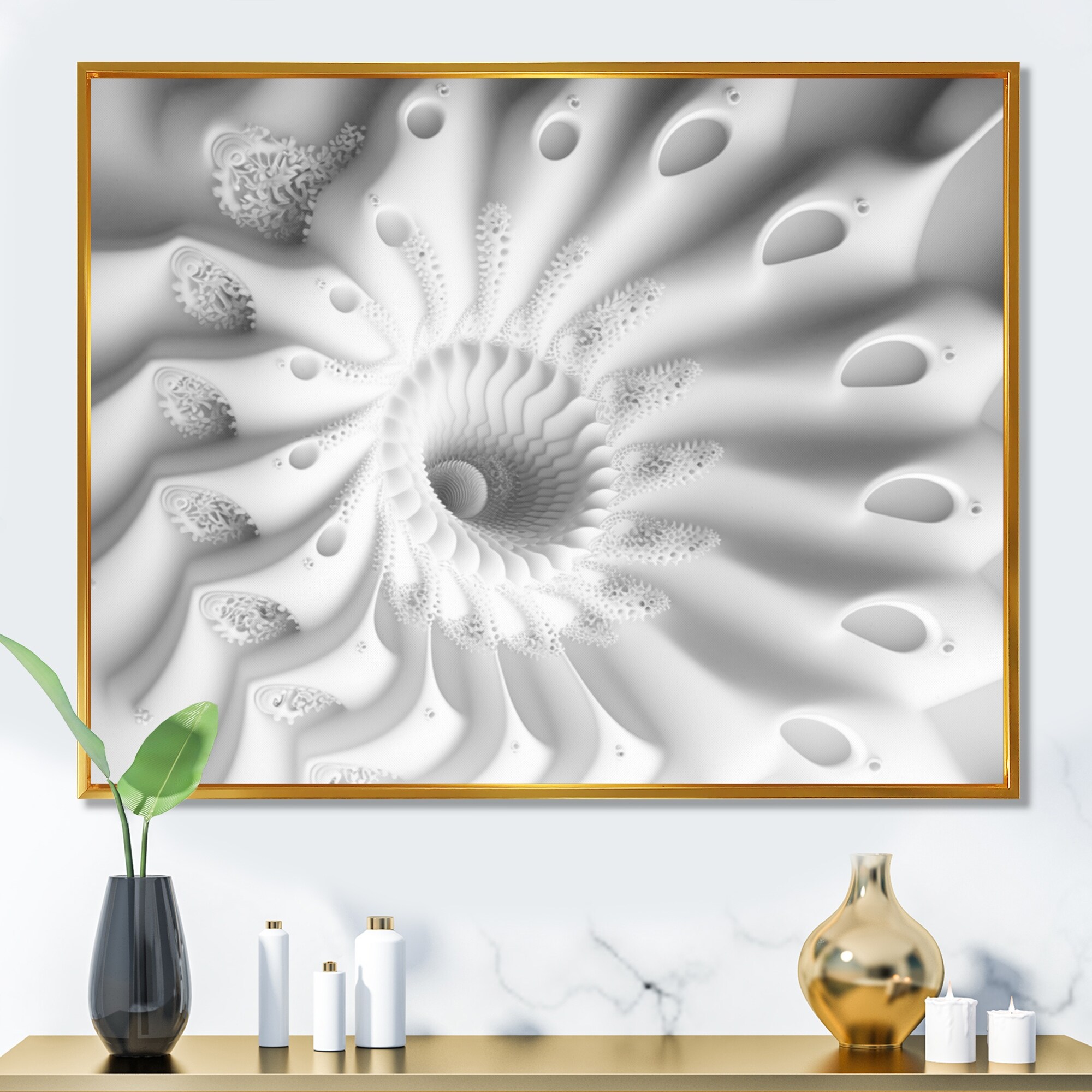 Designart "White Fractal Spiralling V" Modern Geometric Framed Canvas Wall Art Print