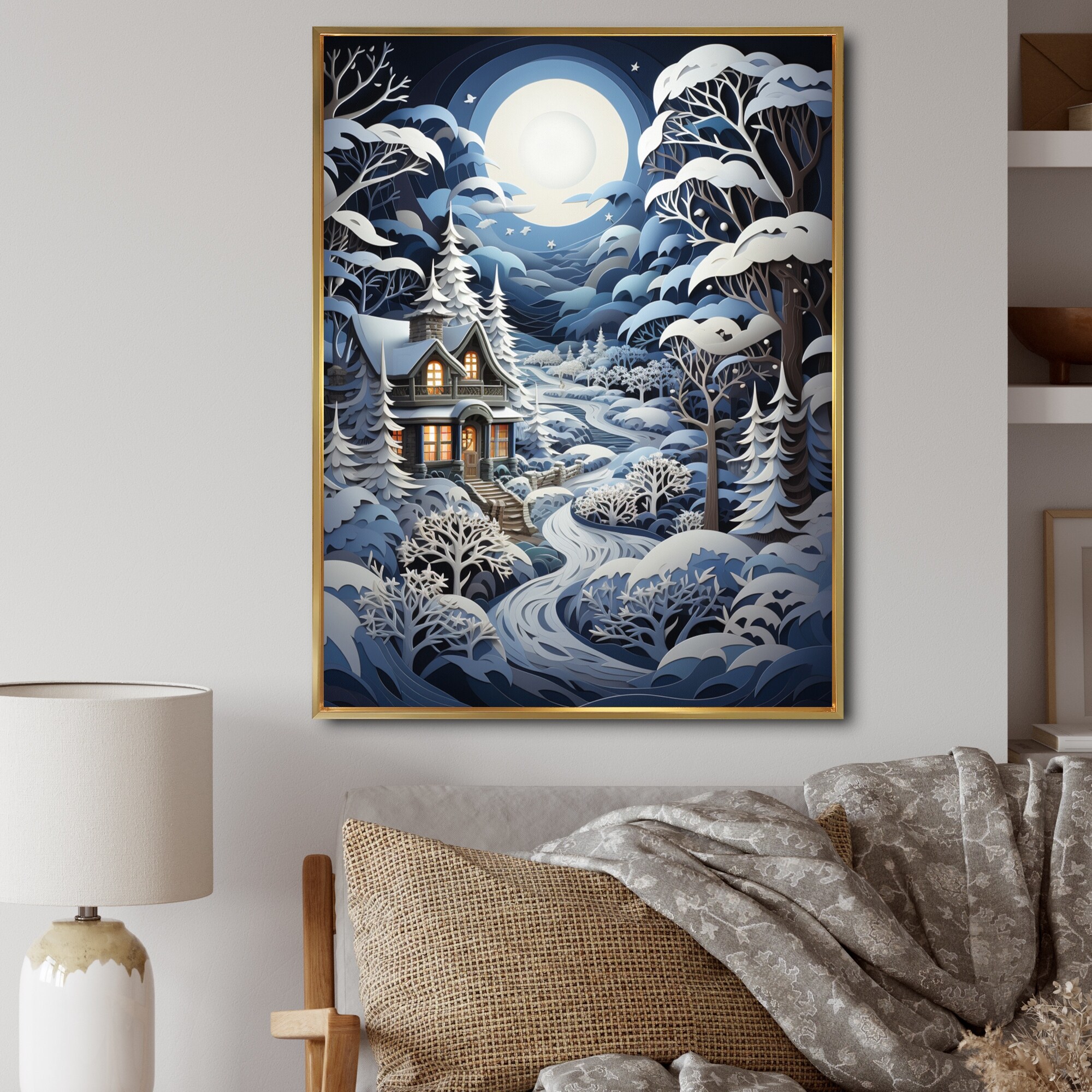 Designart "Blue Winters Embrace Papercut" Winter Landscape Framed Wall Art Prints
