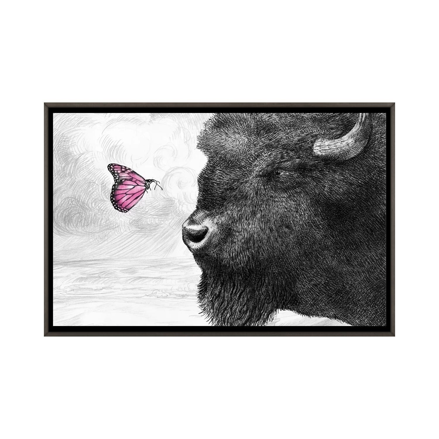 iCanvas "Bison and Butterfly" by Eric Fan Framed