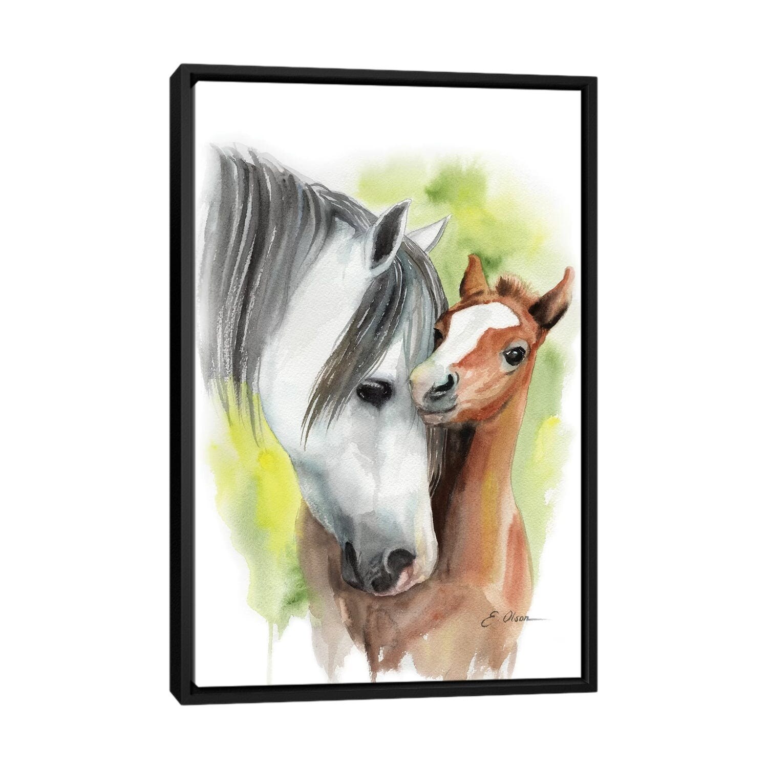 iCanvas "Mother and Baby Horses" by Watercolor Luv Framed Canvas Print