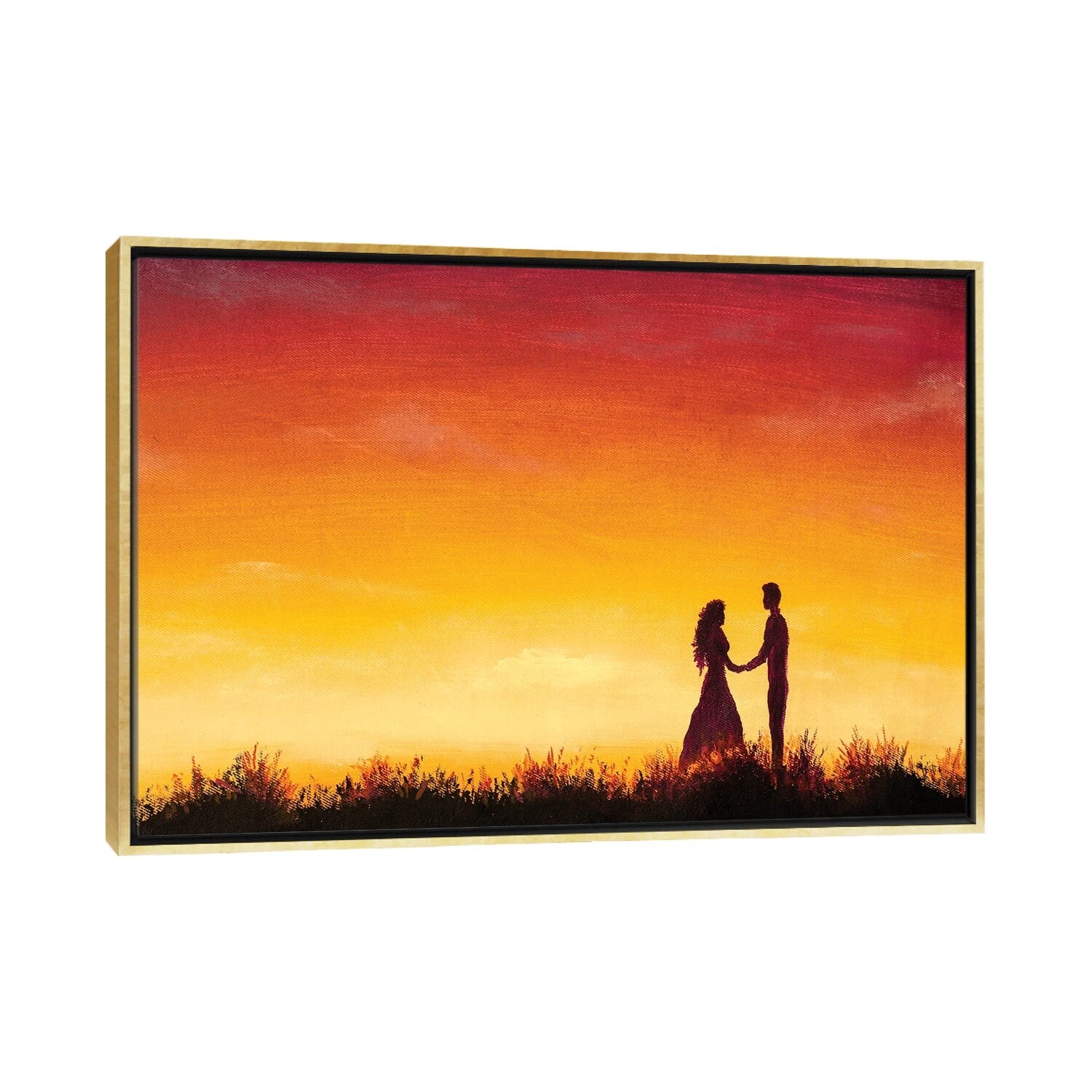 iCanvas "Lovers At At Orange Sunset Dawn on Beautiful Landscape" by Valery Rybakow Framed Canvas Print