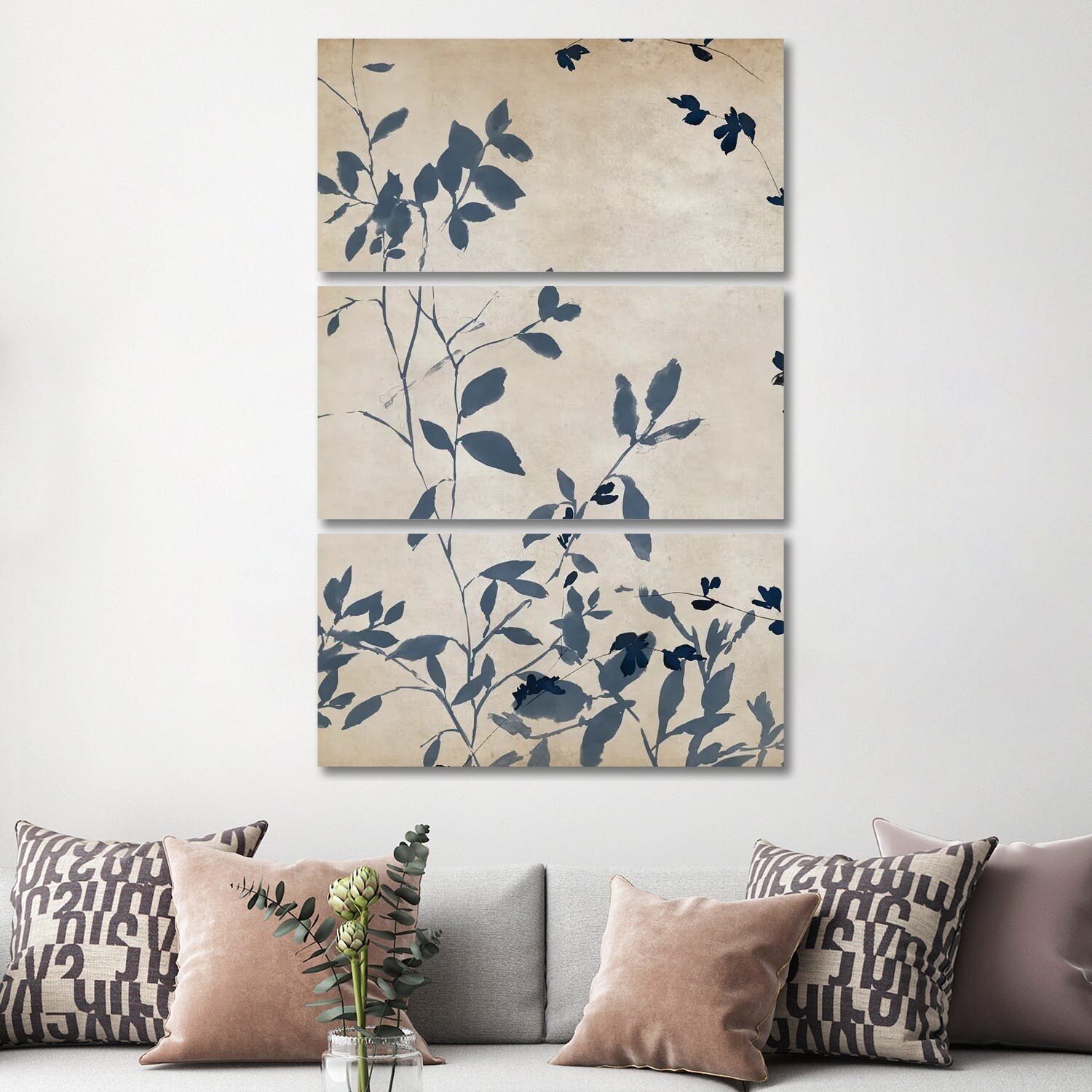 iCanvas "Indigo Leaves Touch I" by Isabelle Z 3-Piece Canvas Wall Art Set