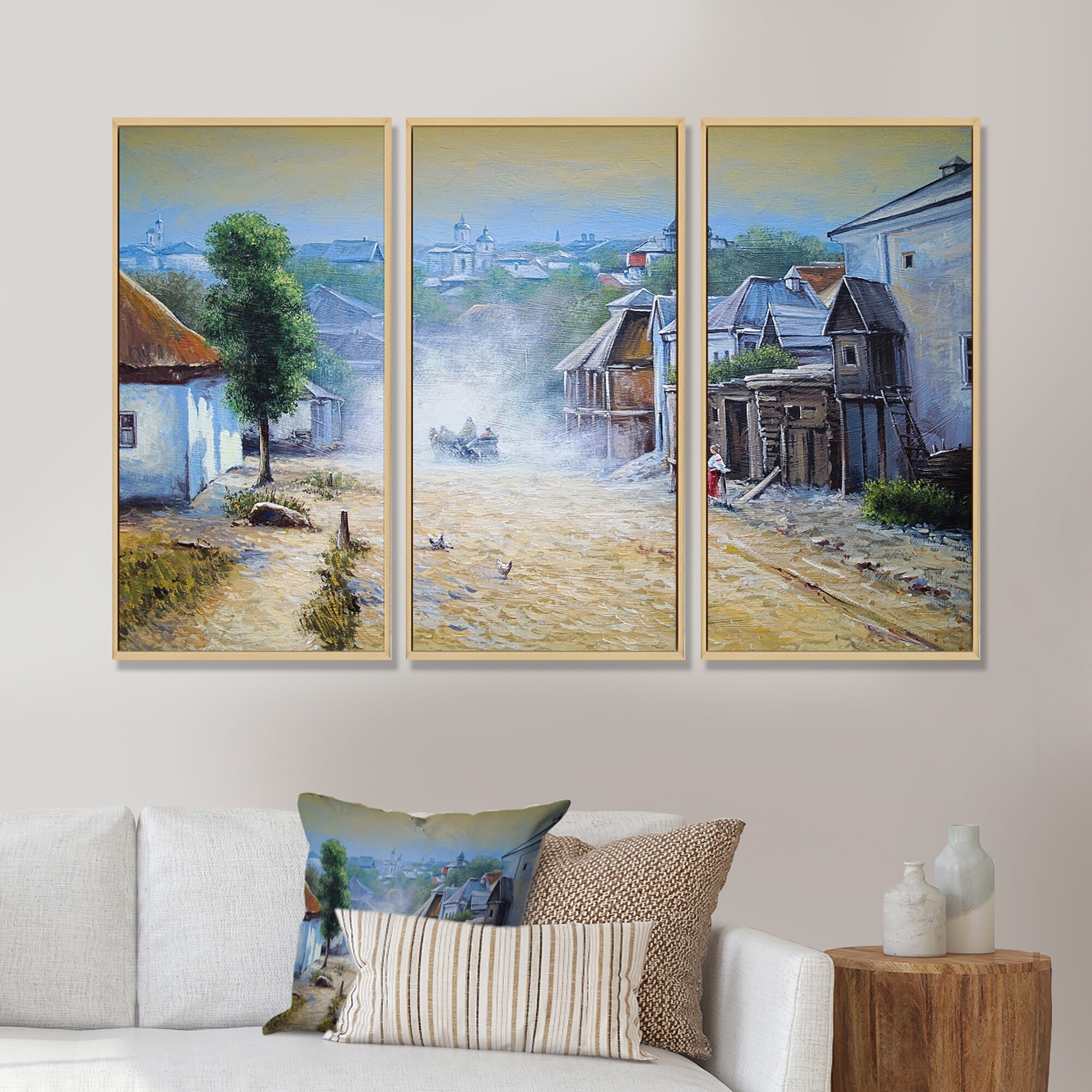 Designart "Vintage View of Old Europe City III" Vintage Framed Artwork Set of 3 - 4 Colors of Frames