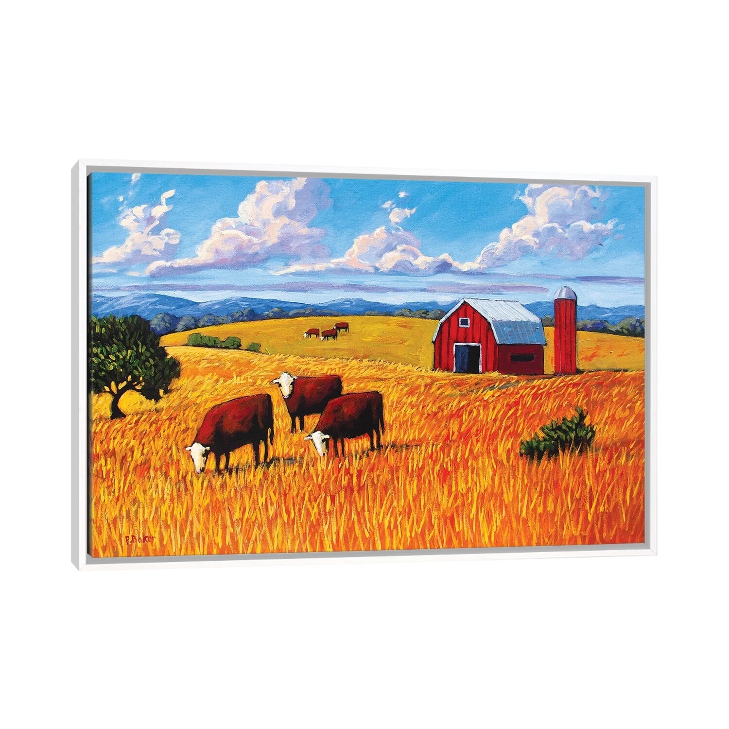 iCanvas "Grazing Cows and Barn" by Patty Baker Framed Canvas Print