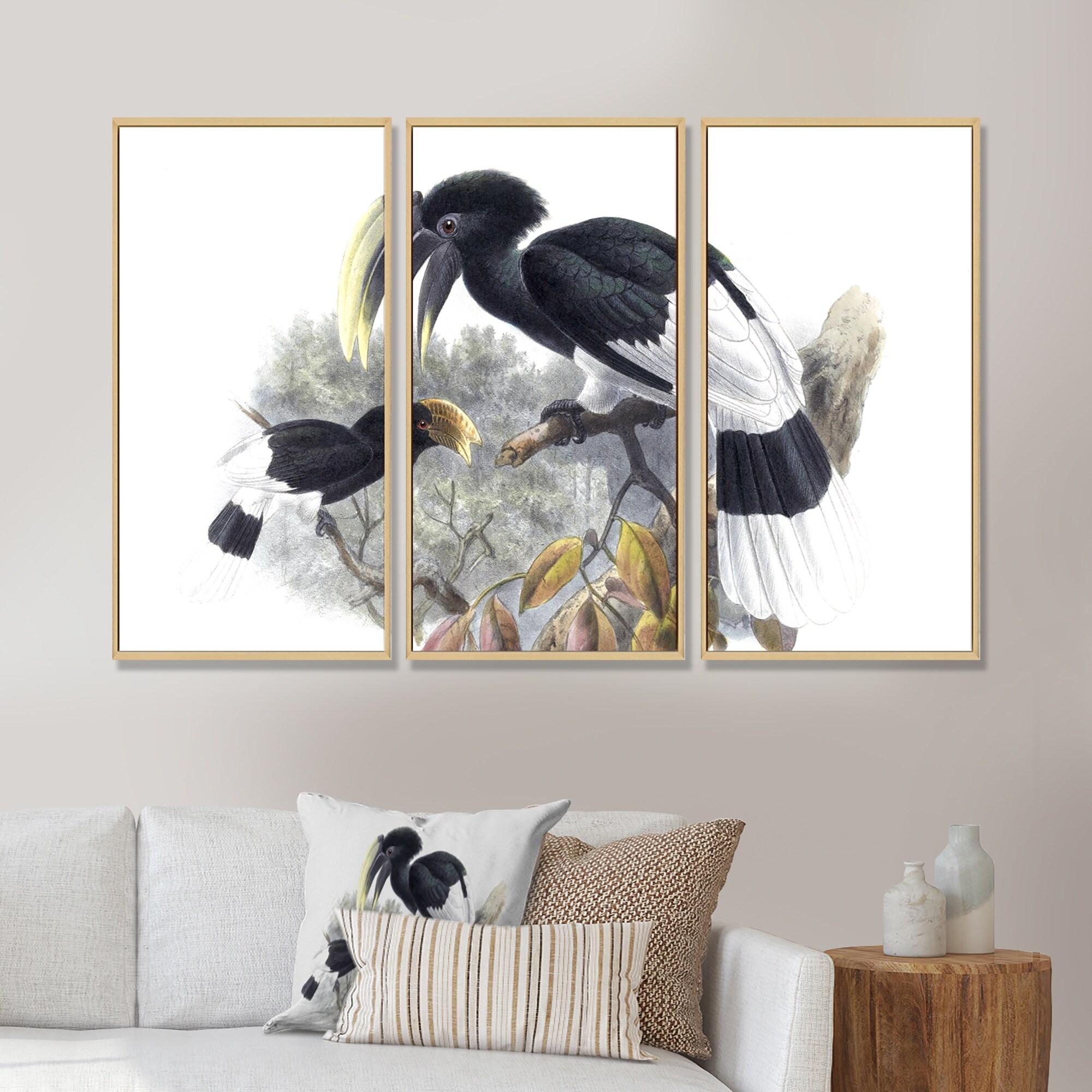 Designart "Vintage Bird Illustration I" Traditional Framed Artwork Set of 3 - 4 Colors of Frames