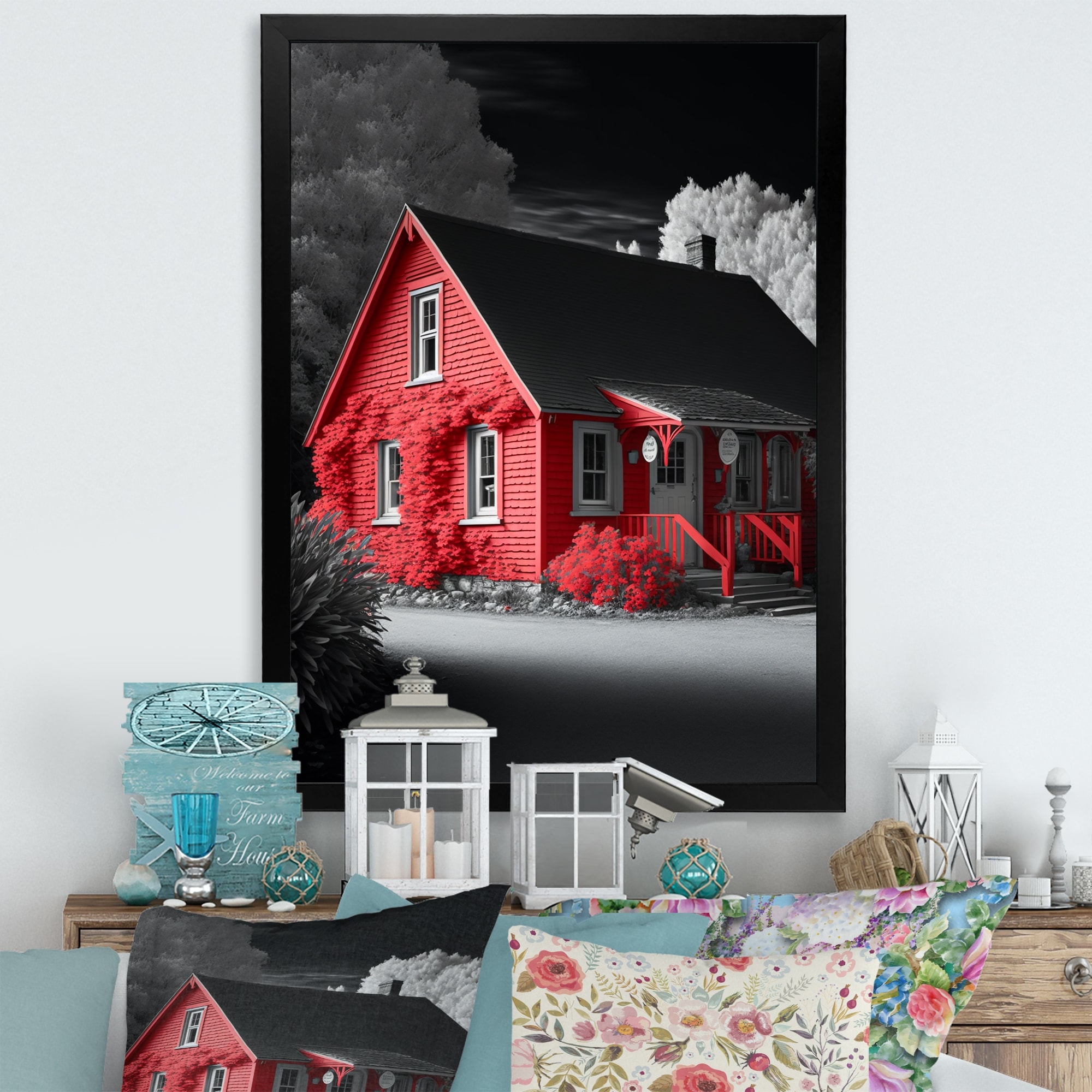 Designart "Red Cottage in the Countryside III" Lake House Cottage Framed Art Print