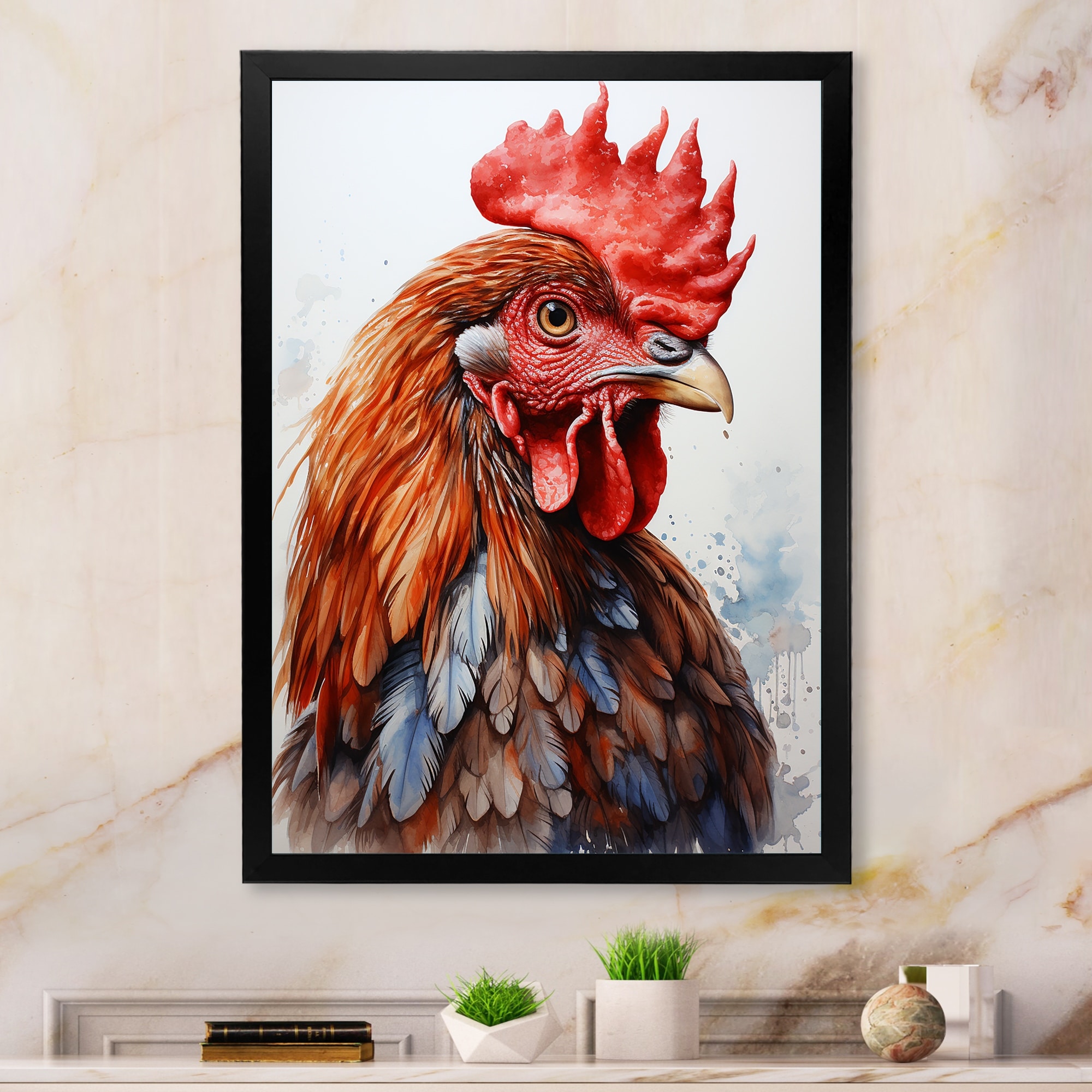 Designart "Abstract Rooster Portrait" Animals Rooster Framed Canvas Print