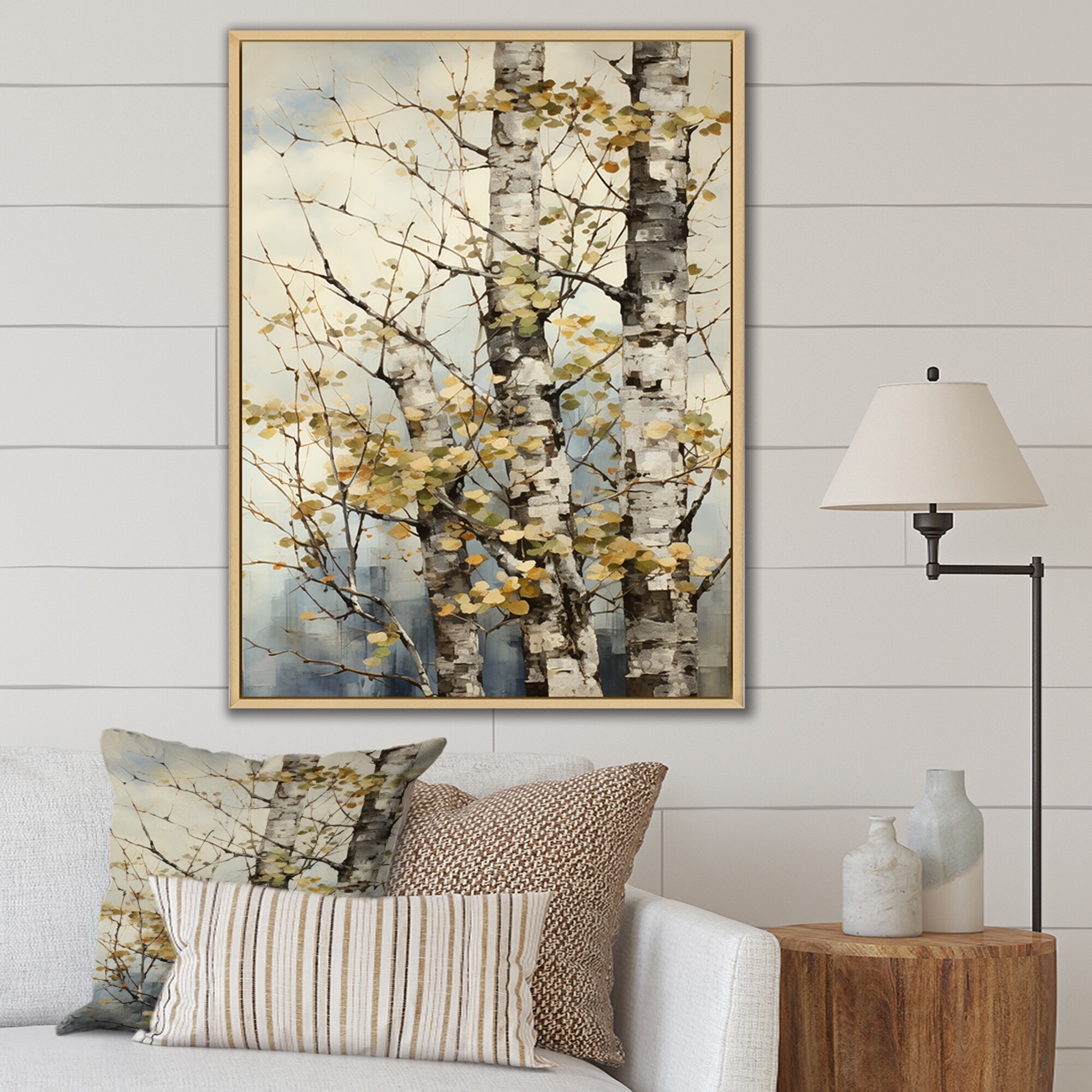 Designart "Beige Yellow Tree Sycamore Symphony" Tree Sycamore Framed Canvas Wall Art