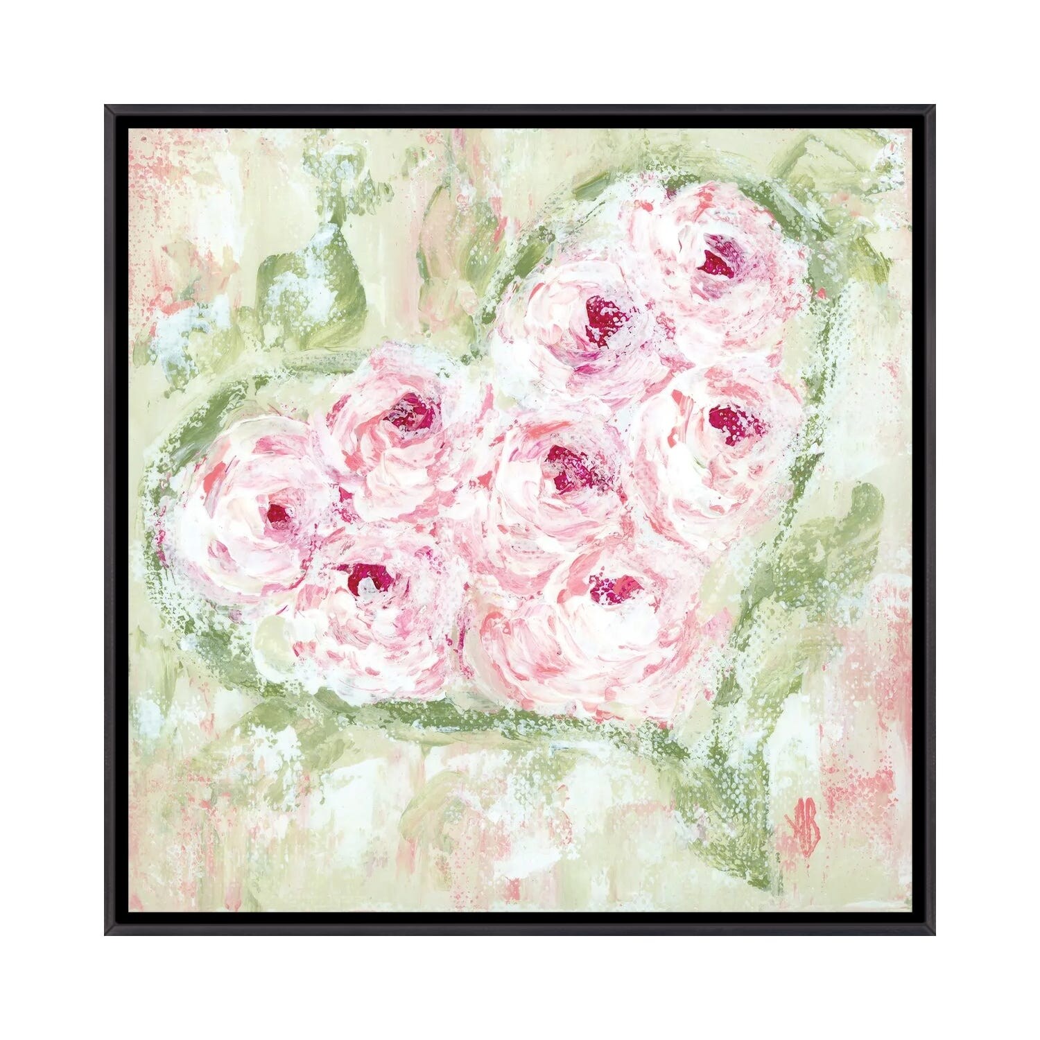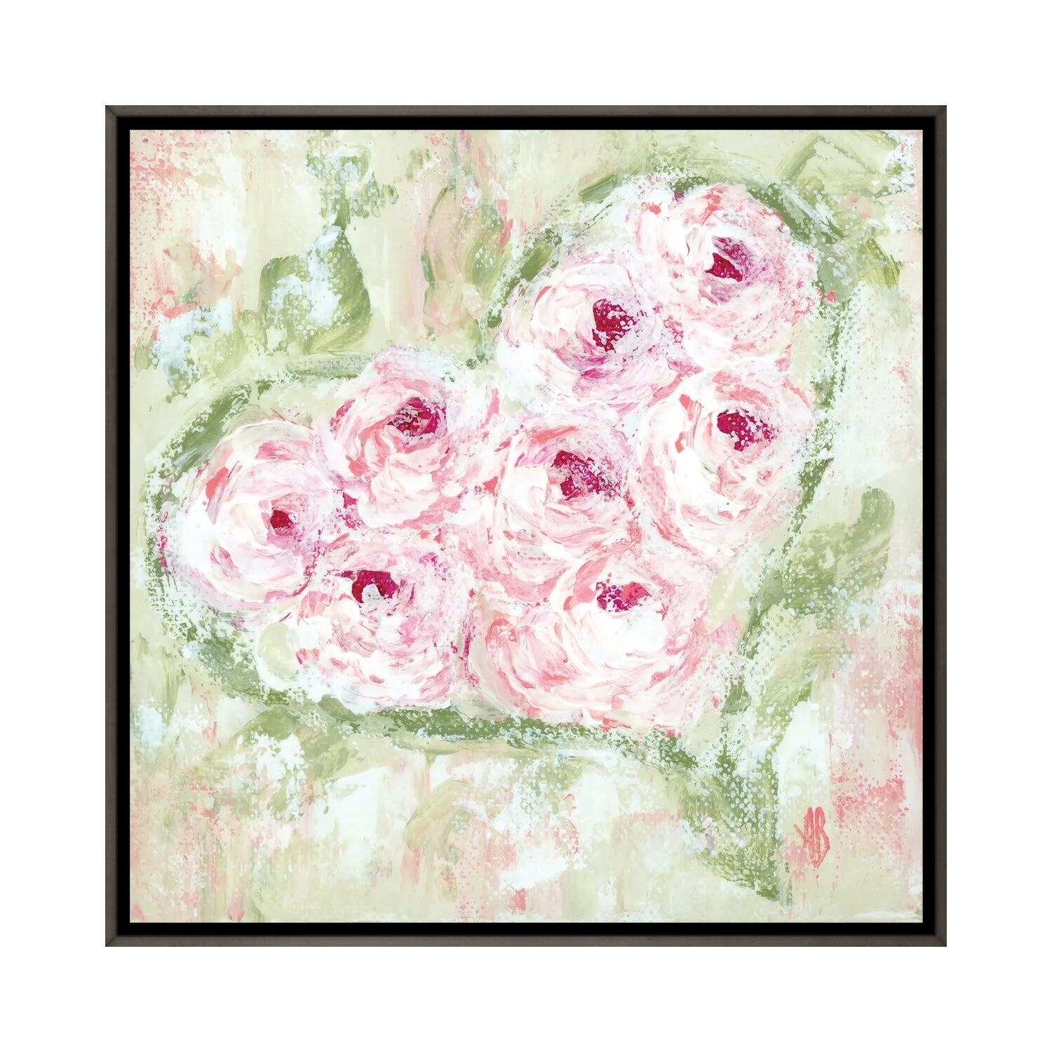 iCanvas "Pink Floral Heart" by Ashley Bradley Framed