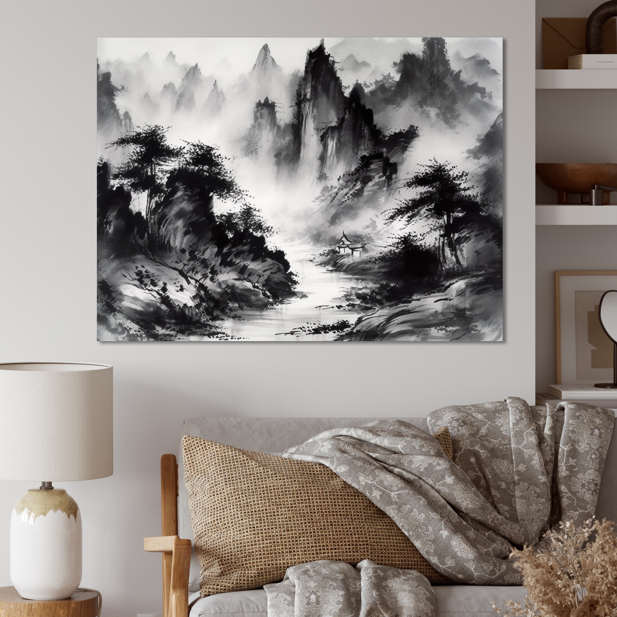 Designart "Black And White Asia Mountains Ii" Japon Landscape Wall Art Prints