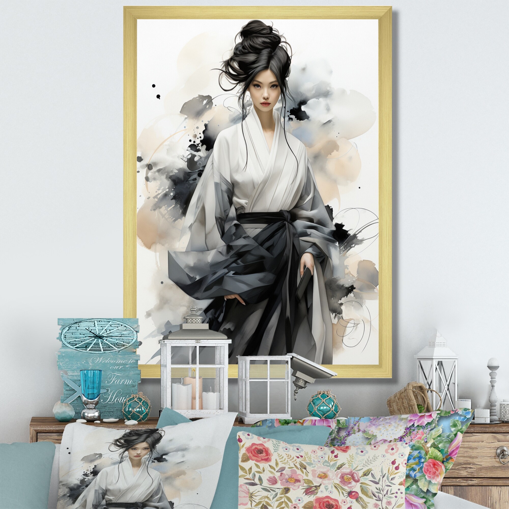 Designart "Asian Art Fashion Illustration I" Asian Art Framed Wall Art Prints