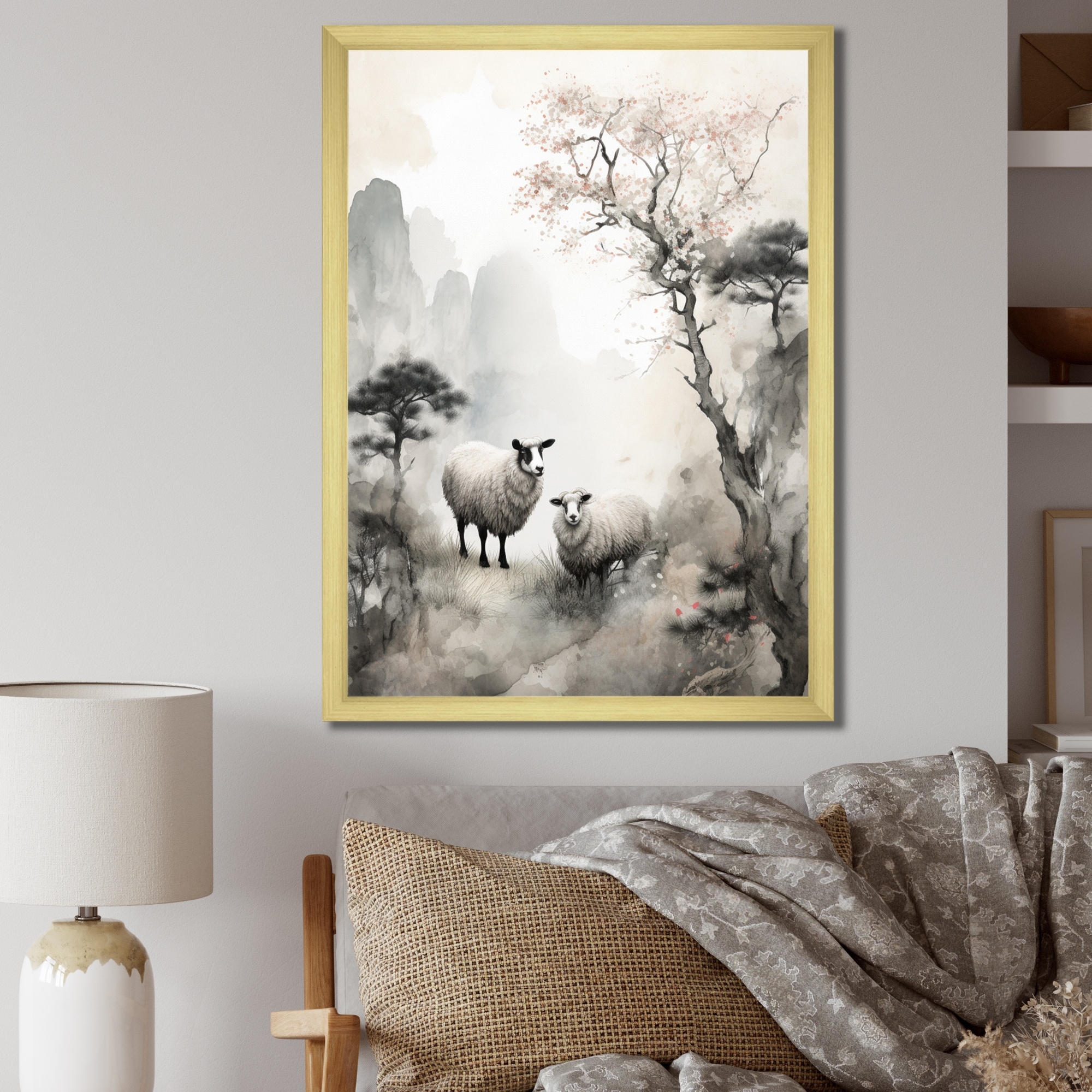 Designart "Asian Art Sheep Sumi" Asian Art Framed Canvas Print