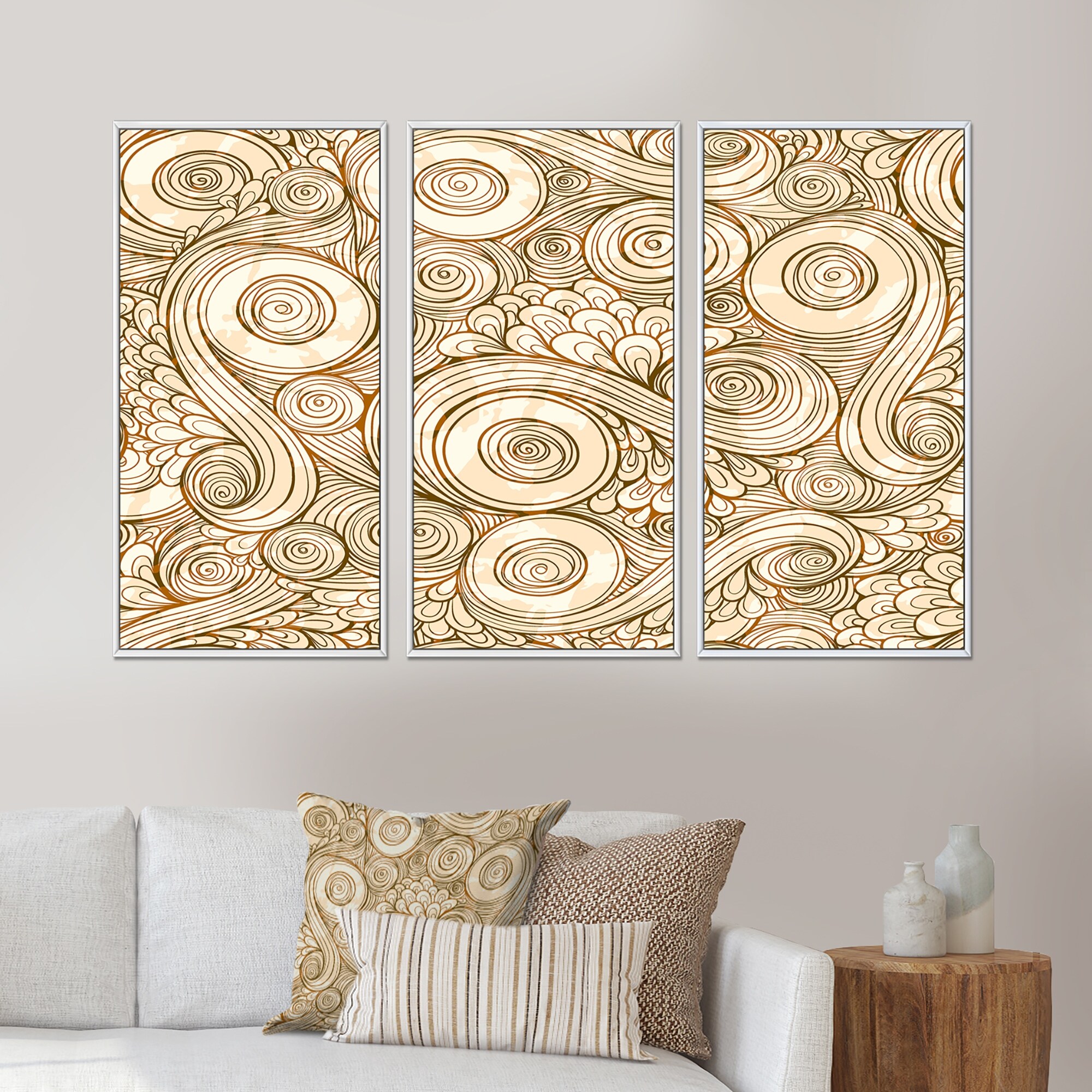 Designart "Retro Asian Sepia Waves" Bohemian Framed Art Prints Set of 3 - 4 Colors of Frames