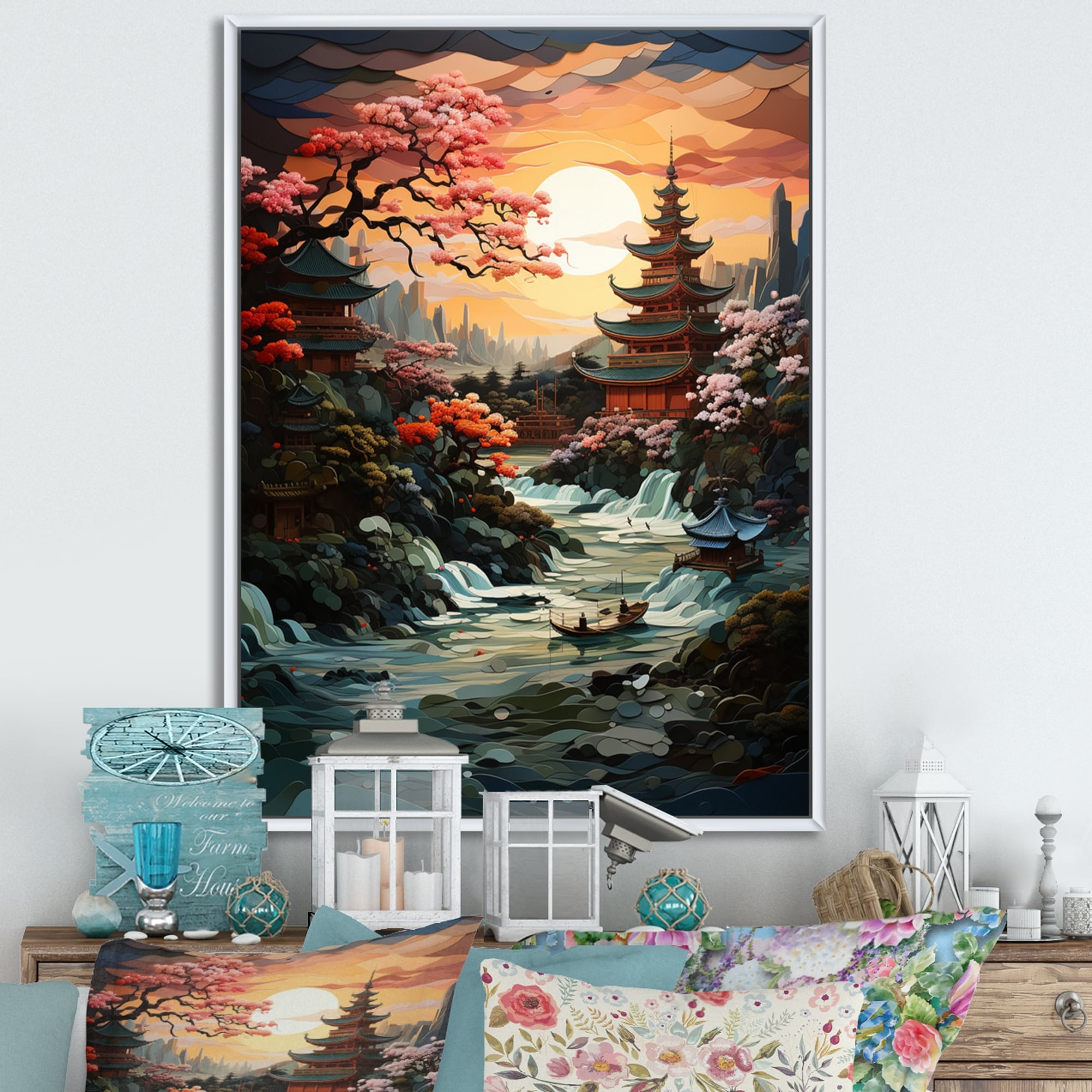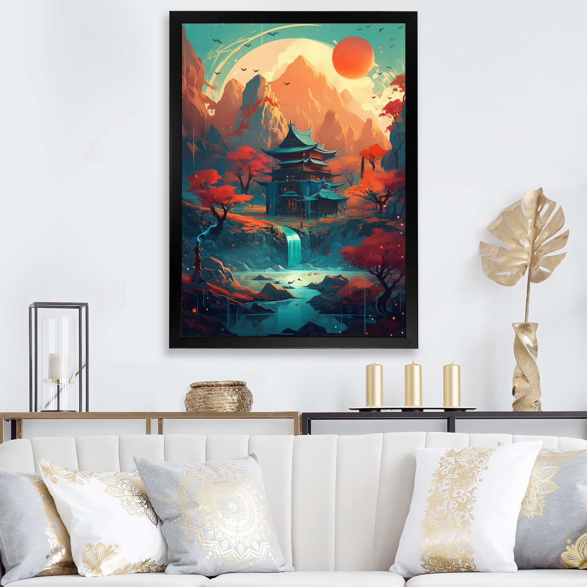 Designart "Asian Art Jade Palace Landscape I" Asian Art Framed Canvas Wall Art