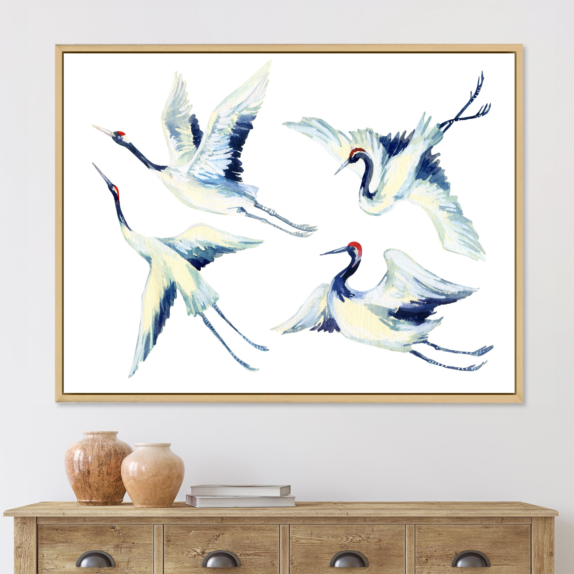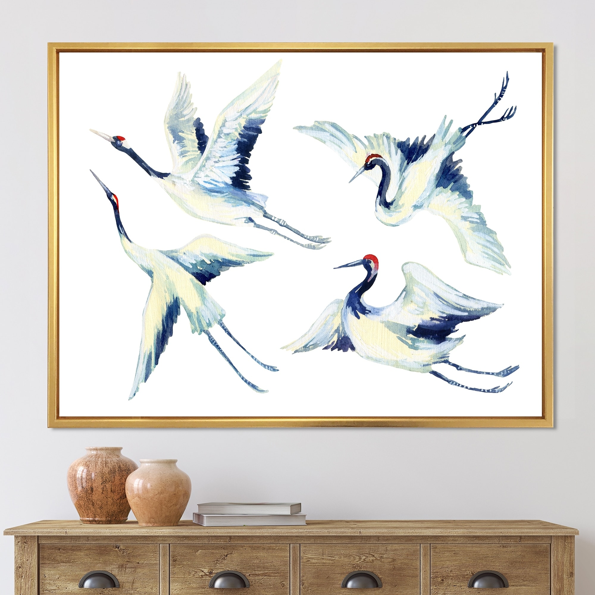 Designart "Asian Crane Bird Impression" Traditional Framed Canvas Wall Art Print