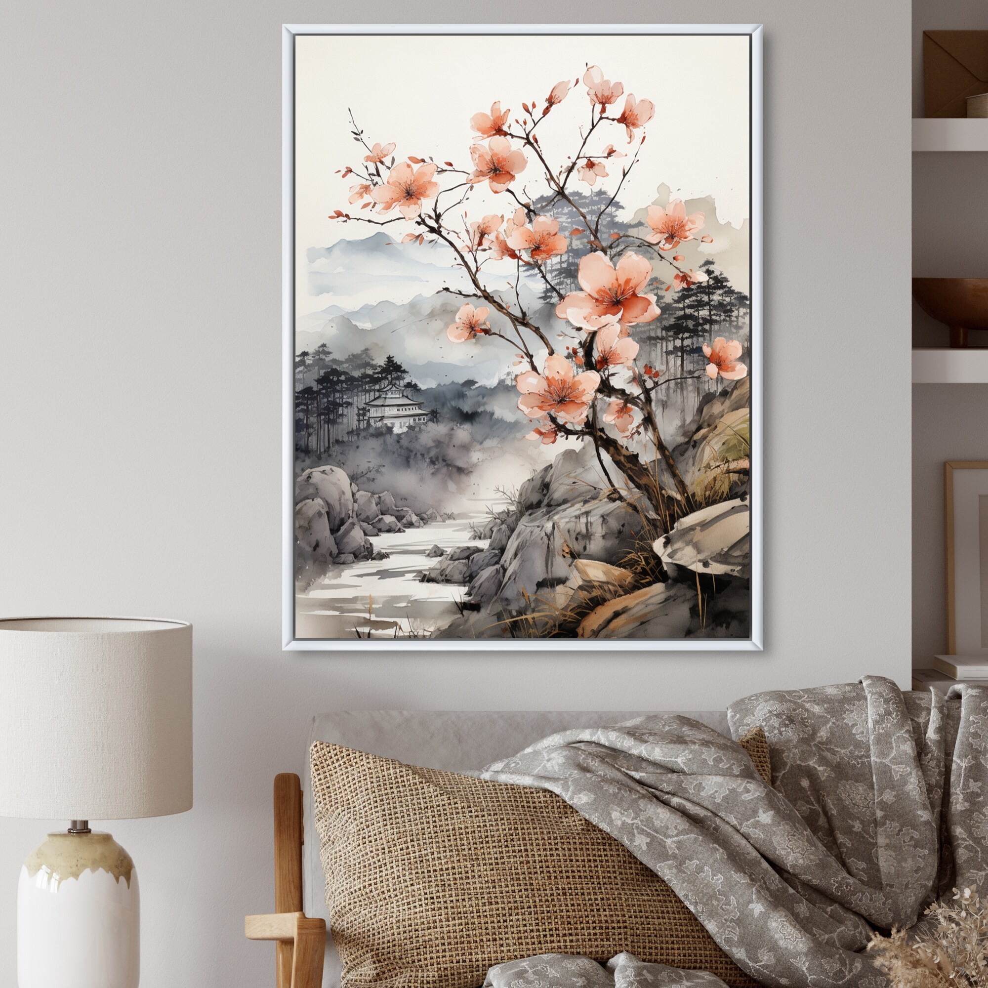 Designart "Mountain Top Asian Inspired Home V" Japon Landscape Framed Canvas Print