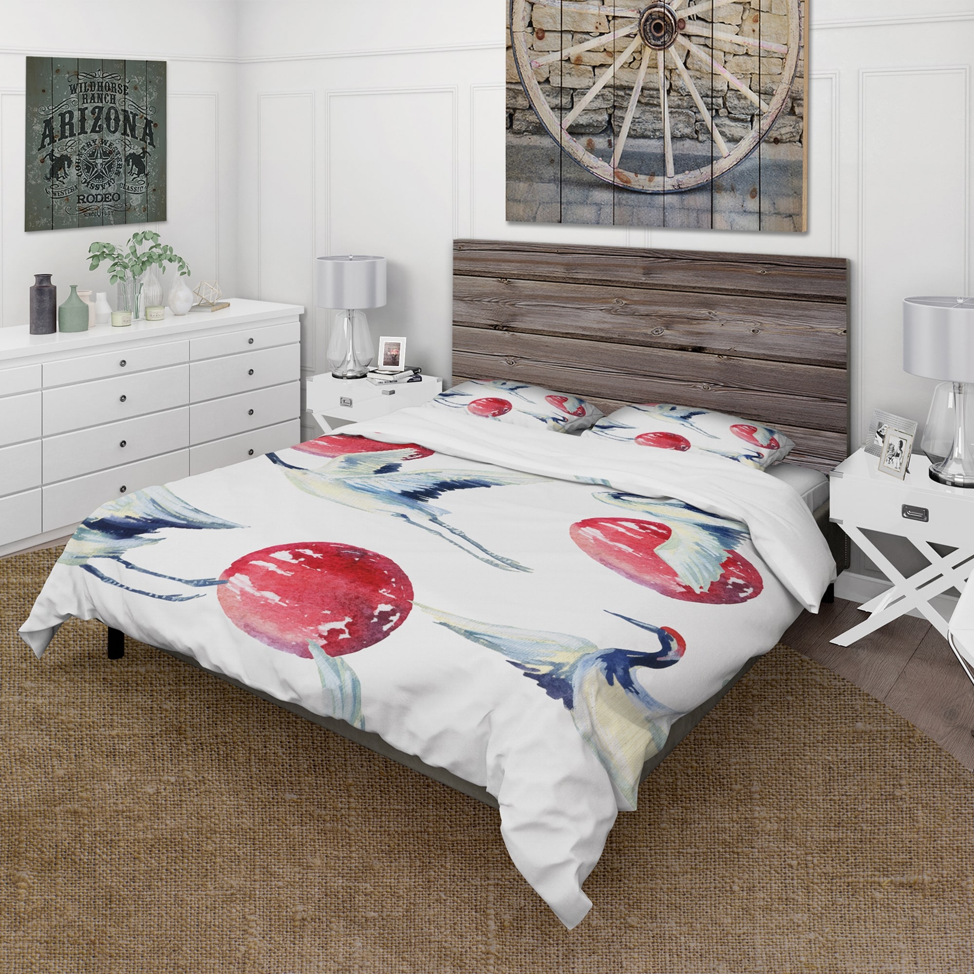 Designart 'Asian Crane Bird With Red Full Moon' Traditional Duvet Cover Set