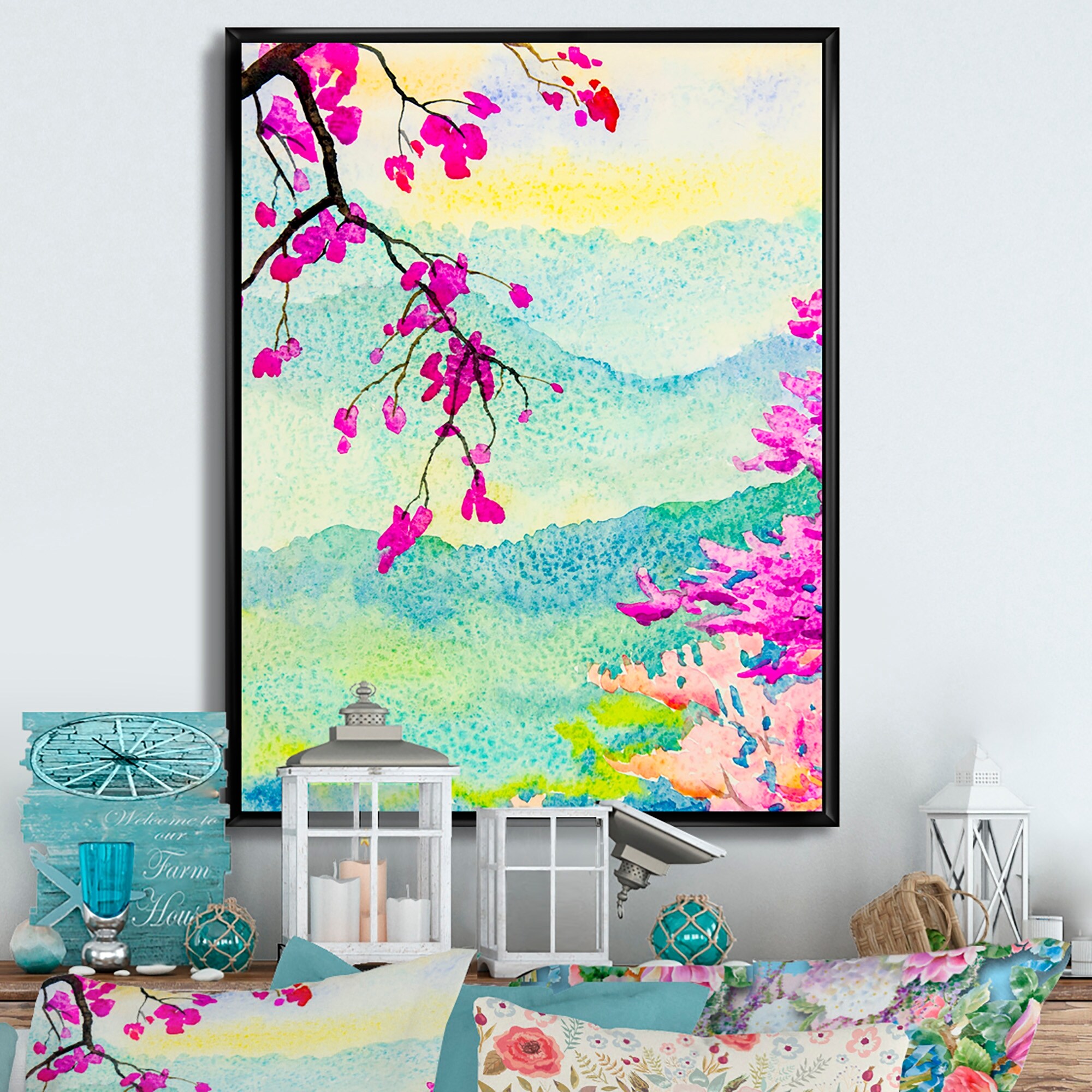 Designart "Colorfull Blooming Asian Pink Tree II" Traditional Framed Canvas Wall Decor