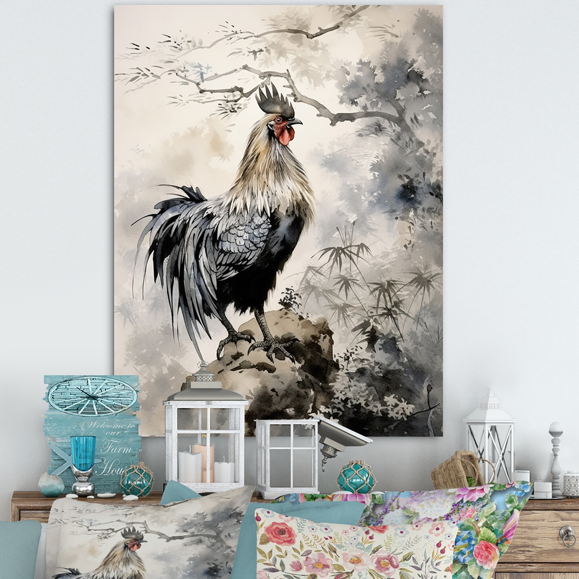 Designart "Asian Art Rooster Sumi I" Asian Art Canvas Print